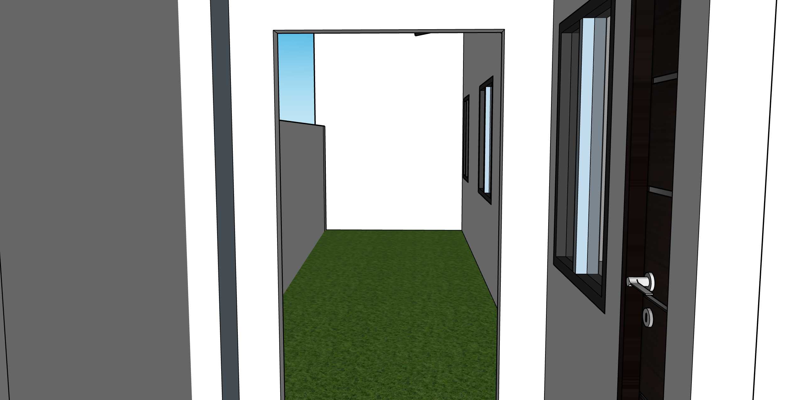 develop the garden area with lush plants and landscaped greenery add a small outdoor table and chair set with a warm ambient light include a simple well defined pathway that guides movement through the space maintain a realistic cohesive outdoor setting with natural daylight and soft shadows