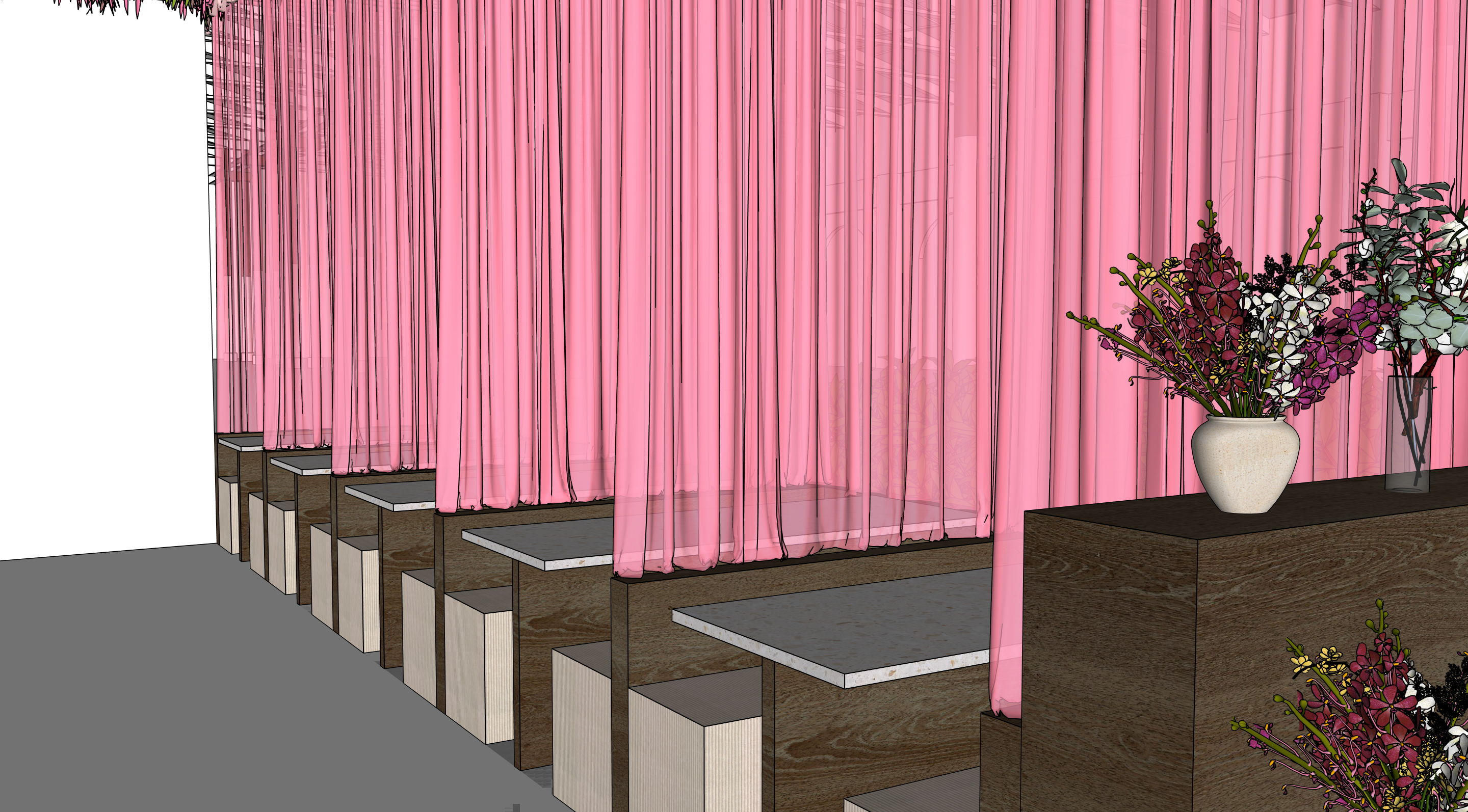 the flooring is the industrial flooring concrete and the booths are a beige fabic and the table tops are a recuylced glass bechtop that is a tarrazzo look