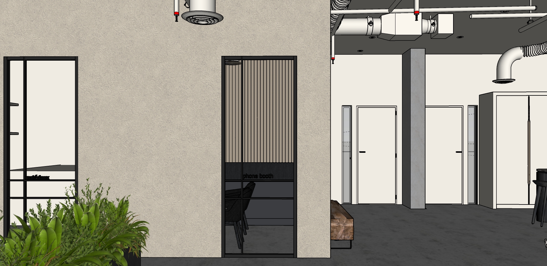 ne rien modifier de l image de base bois noir mur a la chaux beige portes du fond beige et cadre beige sur mur beige peux tu ajouter de la lumiere artificielle dans les salles ferm es mais pas derriere les portes du fond de la piece