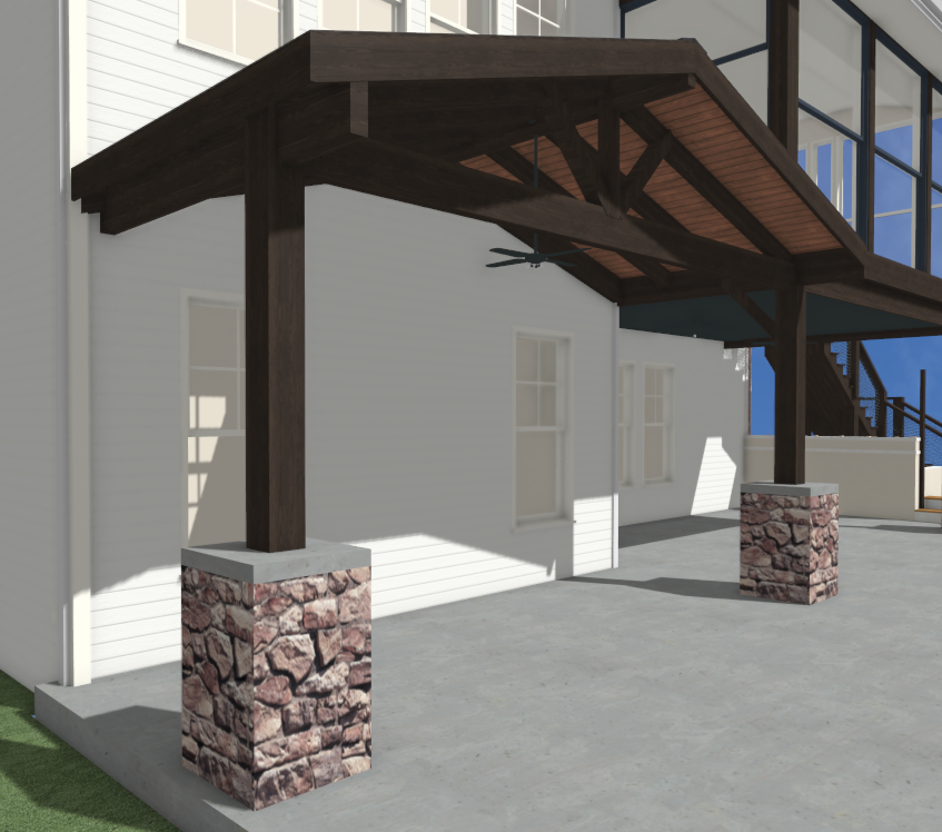 make this more realistic show a table with seating for 8 underneath the roof cap both of the column bases don t add lights