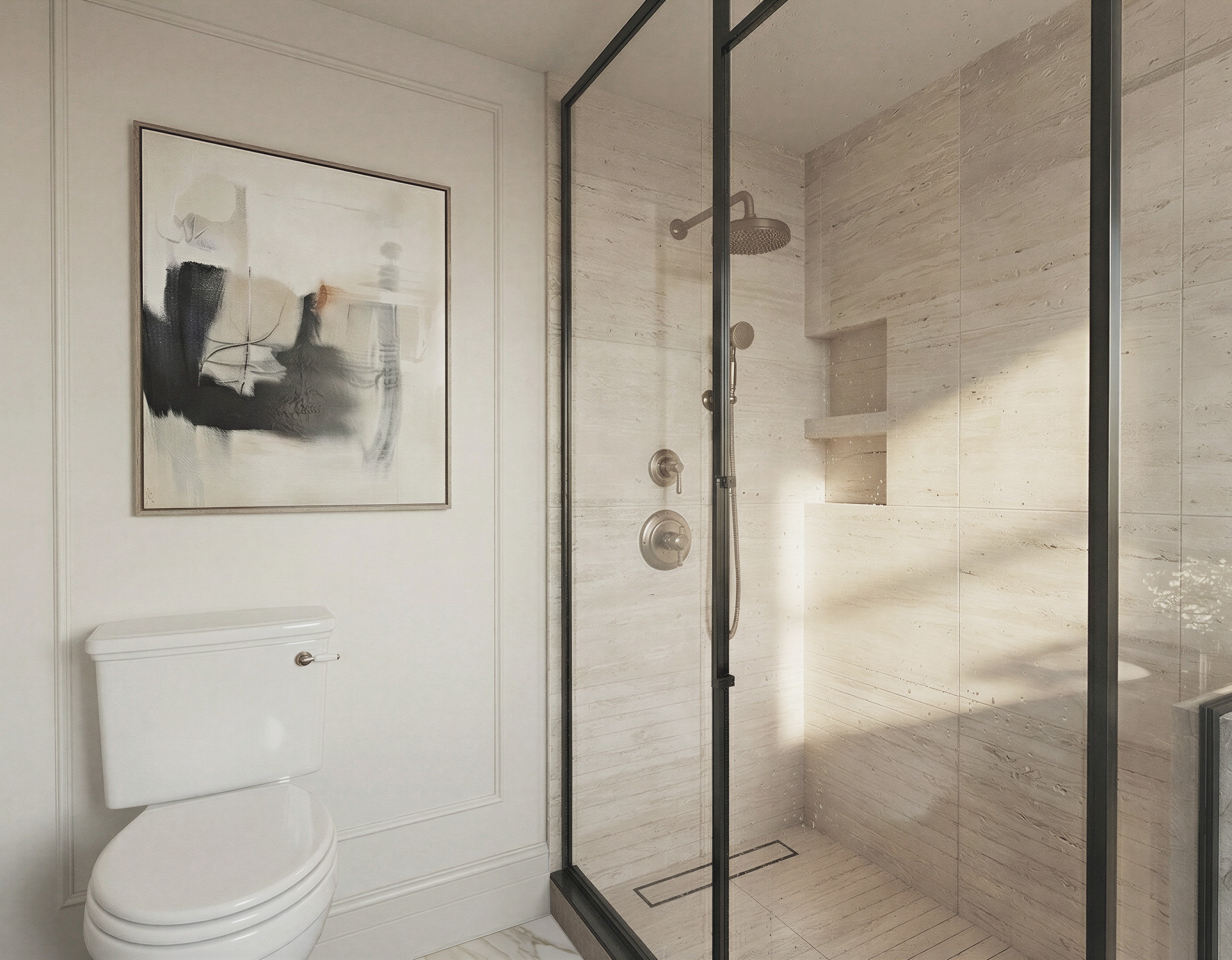 keep everything the same just move the two round valves for the shower plumbing system and move it to the wall on the right side closer to the entry of the shower