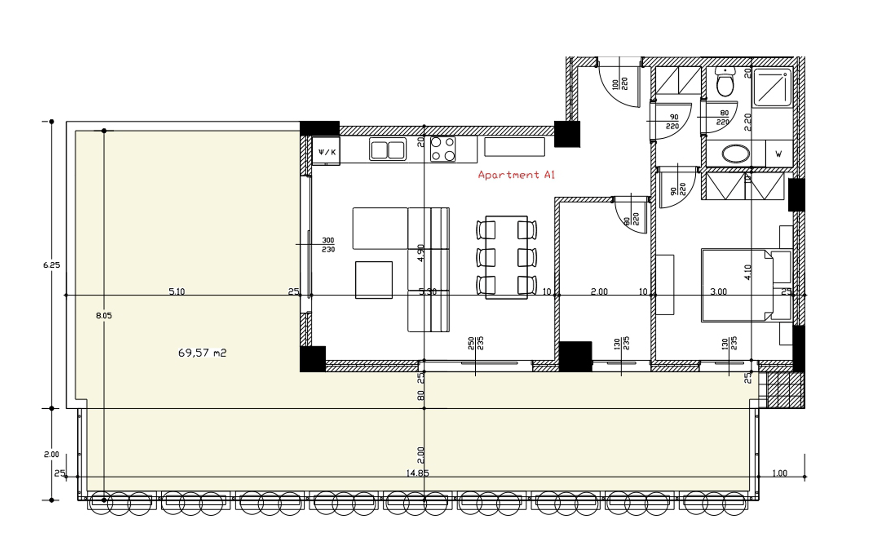 create a colored floor plan overlay from the uploaded image strict geometry lock most important treat the uploaded drawing as final geometry do not modify redraw simplify or reinterpret any walls do not straighten align or correct the plan do not change proportions thickness or positions of walls do not move doors shafts staircases or elevator core do not add or remove any architectural elements do not merge or split any units this is a visual overlay only not a redesign preserve structure keep all unit boundaries exactly as drawn keep original unit numbering 1 12 unchanged keep corridor staircases elevator shafts exactly as is keep the central light wells exactly where they are openings lighting do not add new windows anywhere assume no windows on left and right fa ades natural light only comes from top fa ade bottom fa ade existing central light wells do not visually suggest side openings coloring style developer brochure level use soft realistic neutral palette living warm light wood bedroom slightly darker wood kitchen beige off white bathroom light grey stone tile corridor core neutral grey keep tones consistent and elegant no bright colors balcony terrace texture very important all outdoor spaces balconies and terraces must have a clearly different material from indoor areas use outdoor tile stone texture e g light grey ceramic textured stone or concrete finish do not use wood flooring on balconies or terraces ensure strong visual contrast between indoor flooring and outdoor surfaces outdoor areas should appear slightly cooler in tone than interior spaces keep balcony and terrace finishes consistent across the entire plan furniture minimal aligned add simple furniture only inside existing rooms living sofa table bedroom bed wardrobe kitchen linear cabinets bathroom shower wc sink furniture must follow room shape exactly do not change walls to fit furniture edge control important for archysynth do not clean up irregular edges do not fill gaps or close small offsets respect all original imperfections in the drawing line preservation keep original wall outlines visible do not replace with new thick stylized walls apply color strictly inside existing boundaries output high resolution clean sharp investor ready presentation looks like a professional real estate brochure goal enhance the original plan visually while keeping 100 of the original architecture unchange
