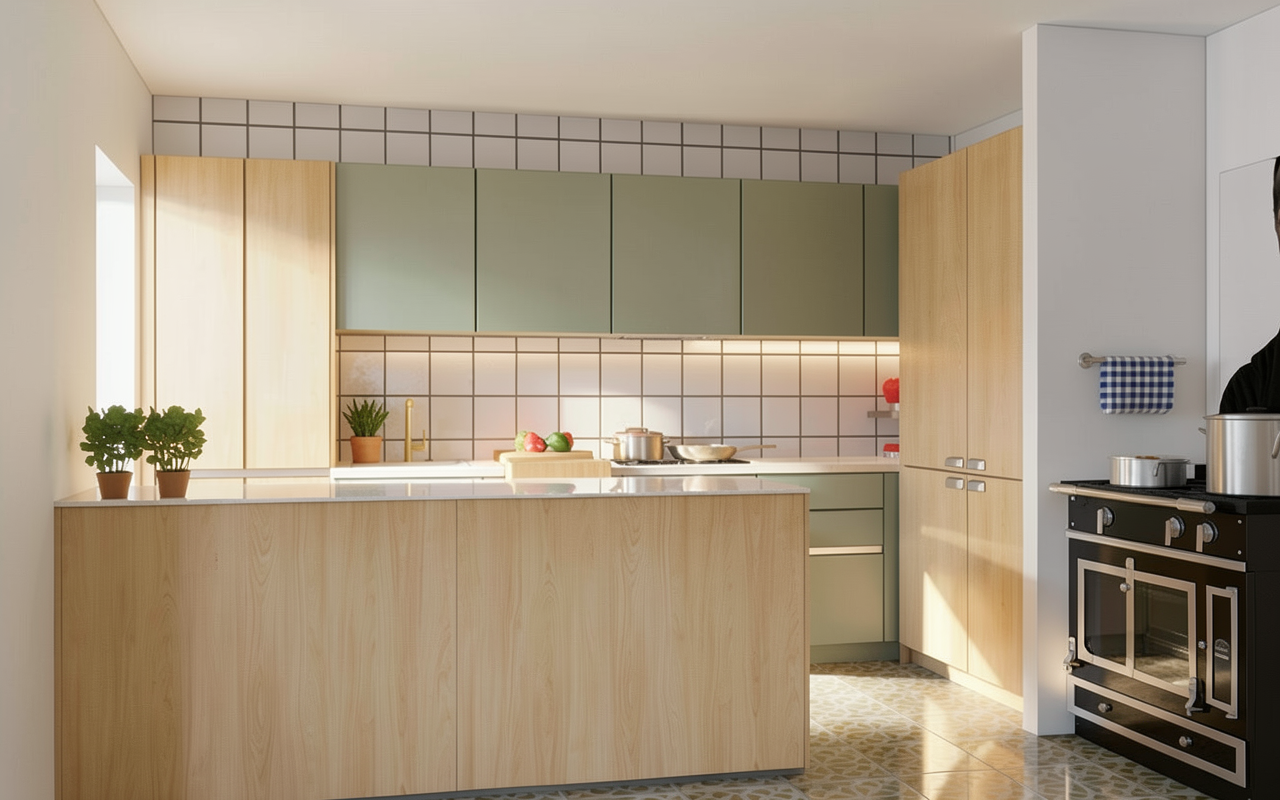 transform this picture into a realistic interior visualization with natural light keep the camera angle keep the original materials and textures make it an ultradetailed view with global illumination and photo based rendering materials