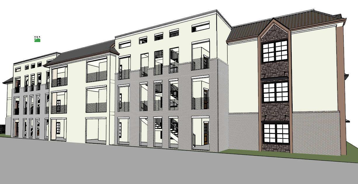 create a realistic 3d scene make the material colors cohesive do not add to the building