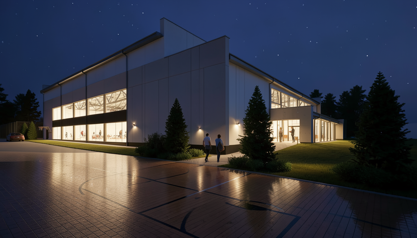 finish the fireplace area with white painted cabinetry and a wood mantle and wood stained horizontal shelving on the bookcases add neutral fabric furniture for a living room in a transitional style with a rug sofa table coffee table double rod curtains with a sheer on the inside and a solid neutral colored curtain on the outside place furniture and items in the way that would be best for this room layout remove the tanks and heater from the image