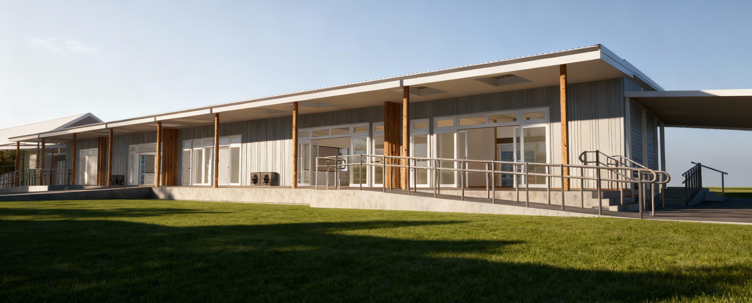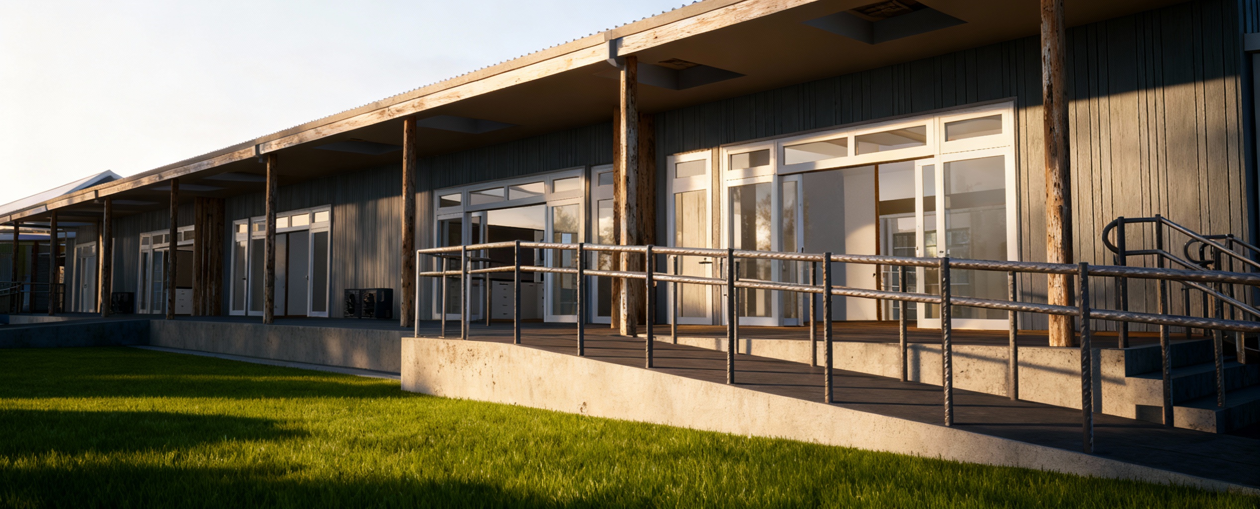reflects on the windows mediterranean trees and villas in the background add some olive trees near the house a bit of sun on the facade ajoute des lauriers roses sun set in orange and pink realistic view