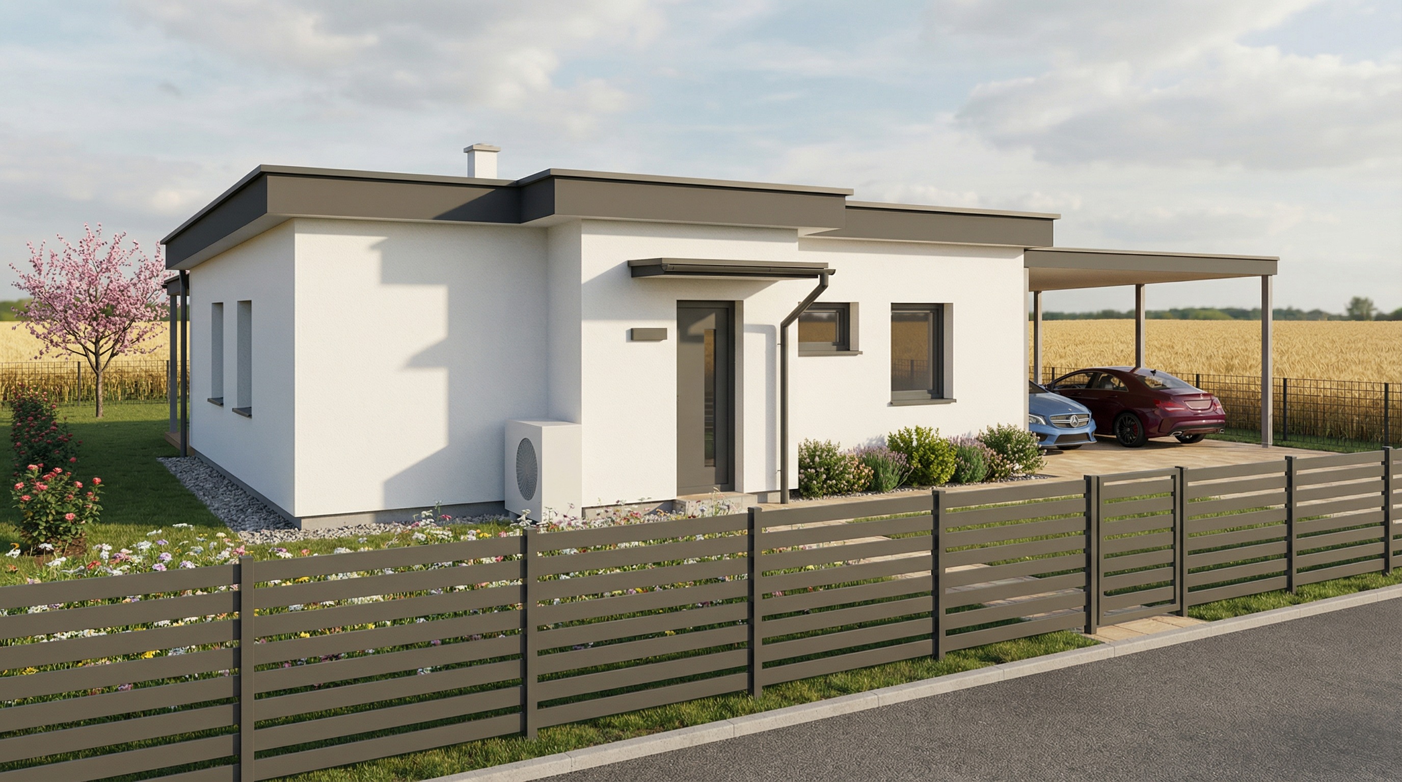 zm barvu sloupk p st e k na dez n dub jejich rozm r ani um st n nem mus b t striktn dle konceptu zm plot vzadu a vpravo za plot ze standardn ch dr t n ch 3d panel plot v pop ed ponechej jako lamelov p idej men kliky vstupn ch dve i branky p idej z hony men ch ke lemuj c ch chodn k ke vstupn m dve m