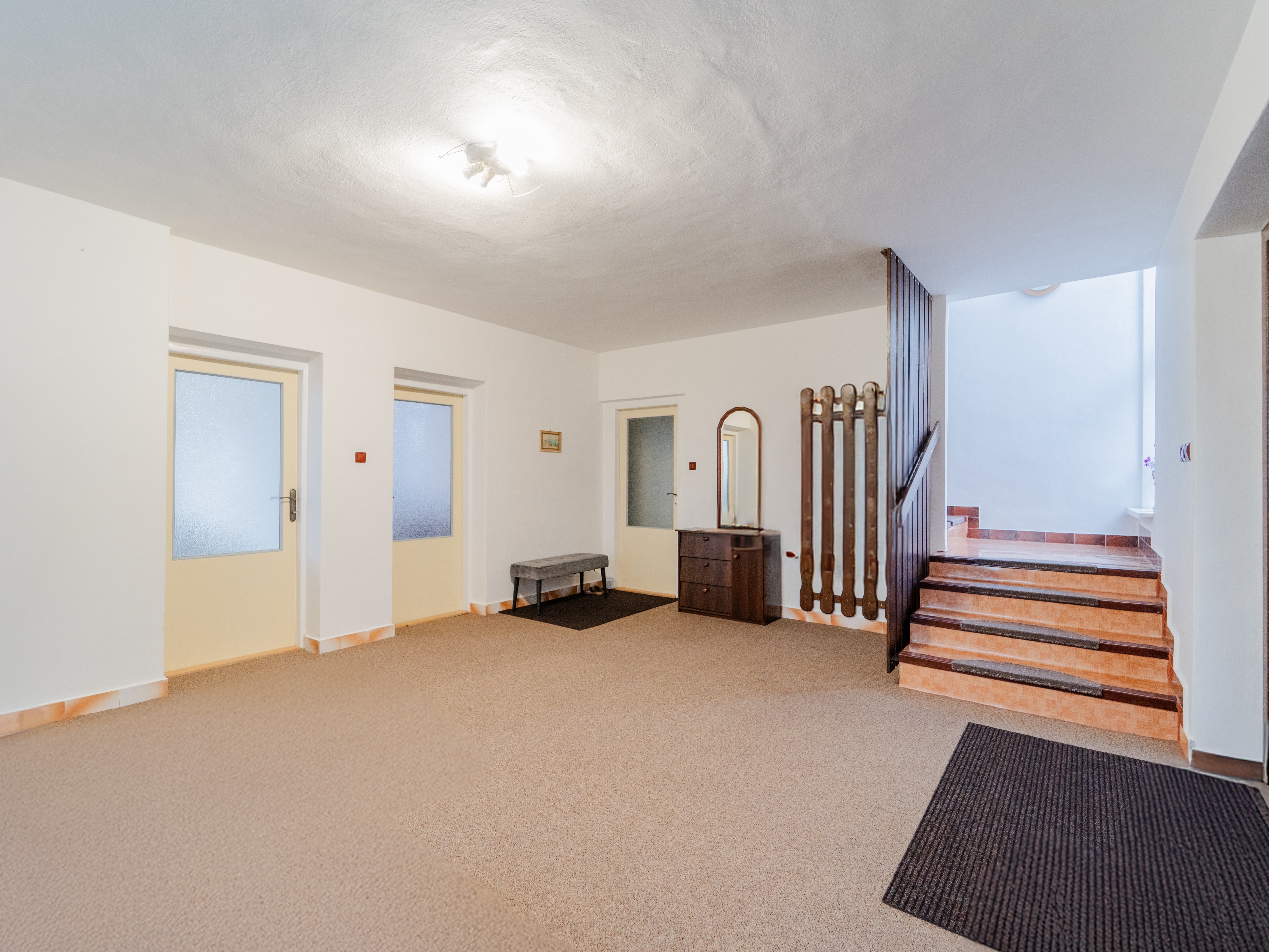 modern vstupn hala v etn n bytku nov podlahy v malby m stnosti a osv tlen zanechej dispozice m stnosti jako na referen n m obr zku
