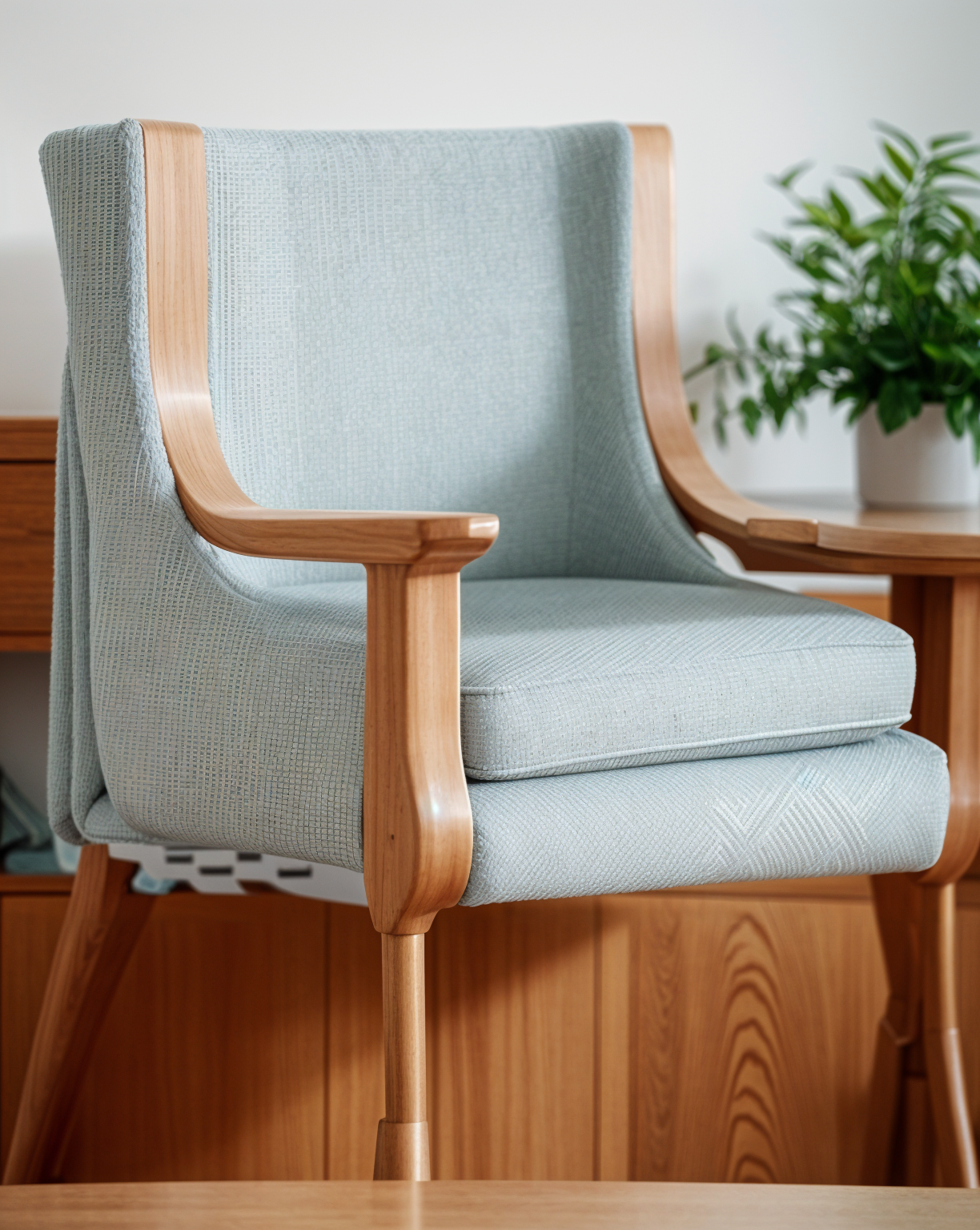 modernist perspective shot weaving inspired chair wooden legs finish architecture