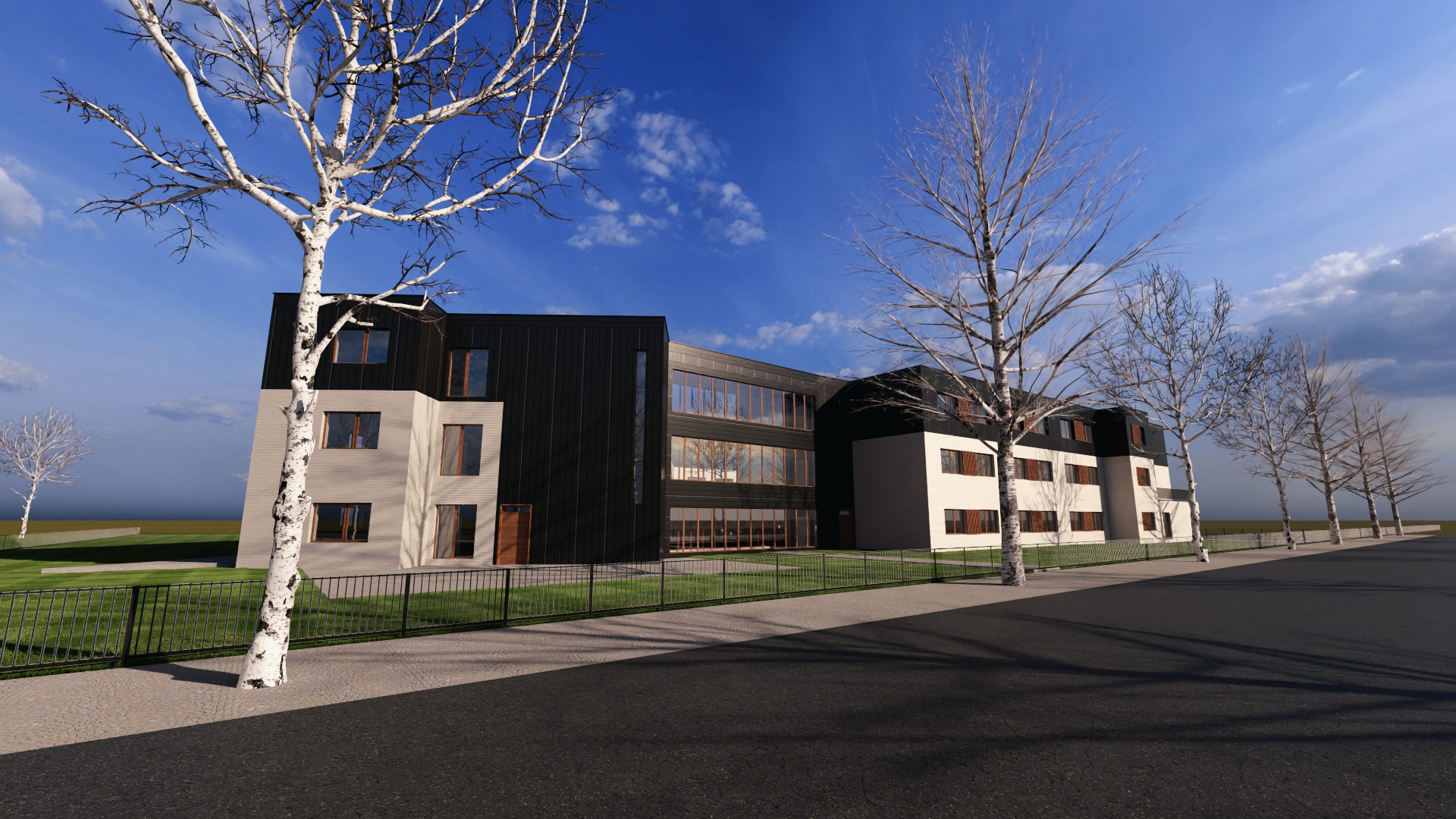 light up facade add interiors light up interiors wet road add curtains nice september add leaves on ground add senior garden around building