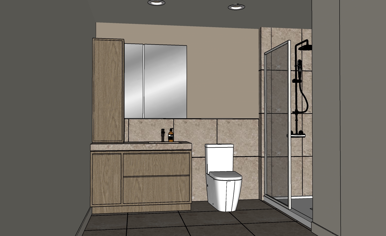 faire un rendu photo r aliste avec de la c ramique c ragres taj mahal ivoire au plancher et au mur exactement a l emplacement ou se trouve la c ramique sur les murs de l image de reference tous les autres murs sont blancs ne rien modifier de l image de base