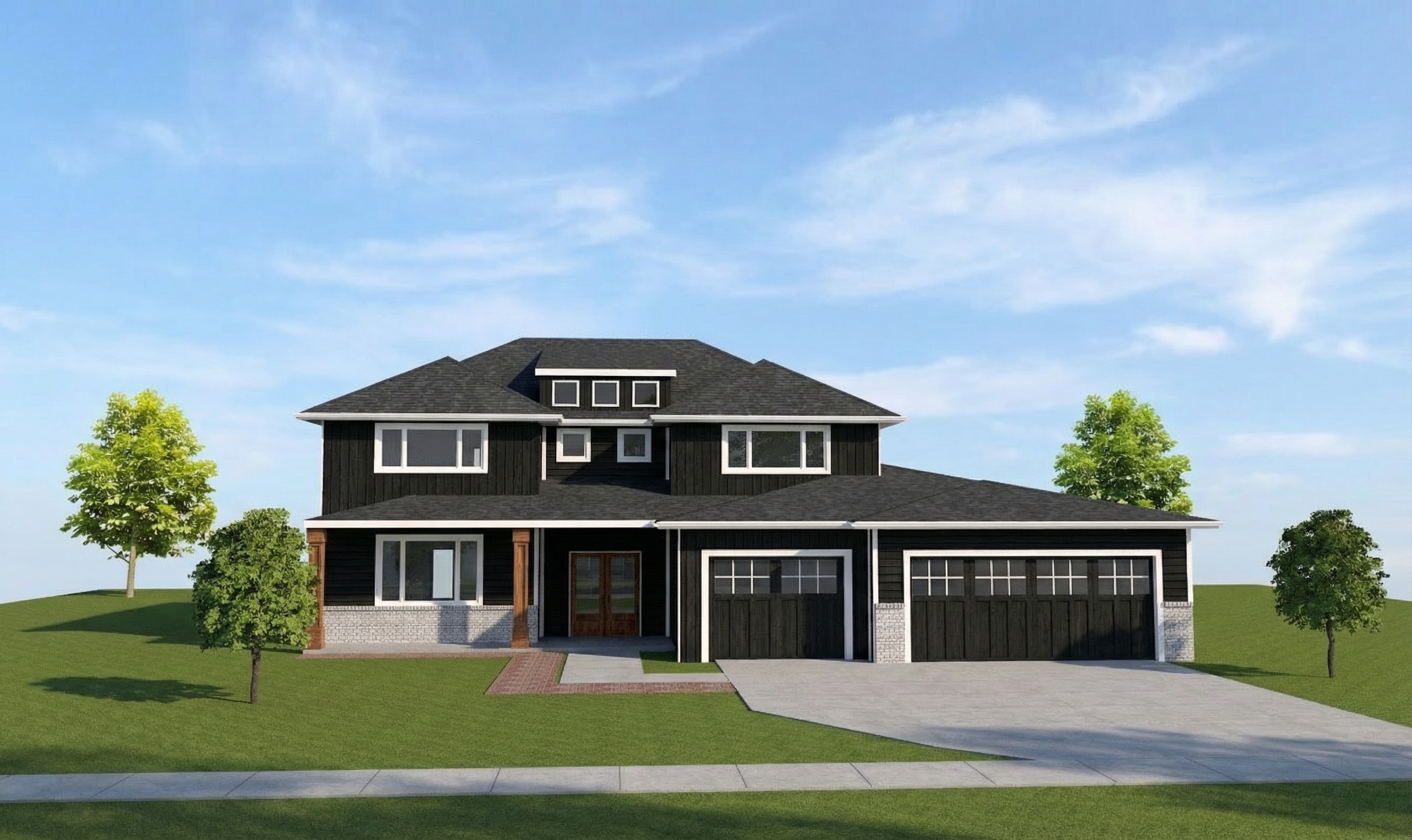 render with white subway tile brass fixtures and a marble grey blue matte tile for niche and shower pan with navy blue cabinets remove marbling from subway tiles add grey tile to floor pan show modern shower head