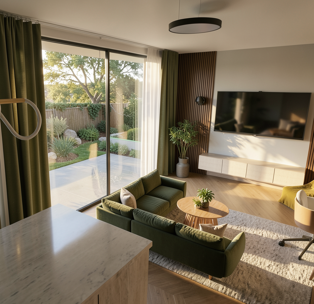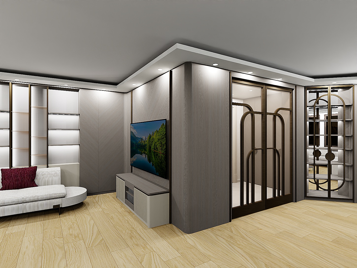 modernist exterior shot keep the cabinet models the same make it realistic architecture