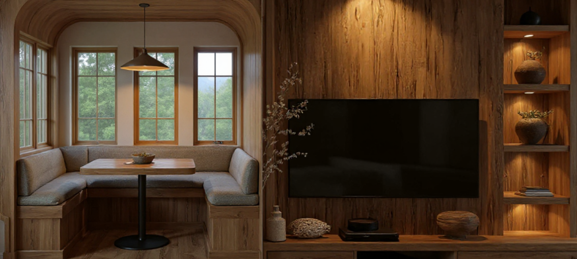 can you keep everything the same except make the back wall of the dining nook also walnut