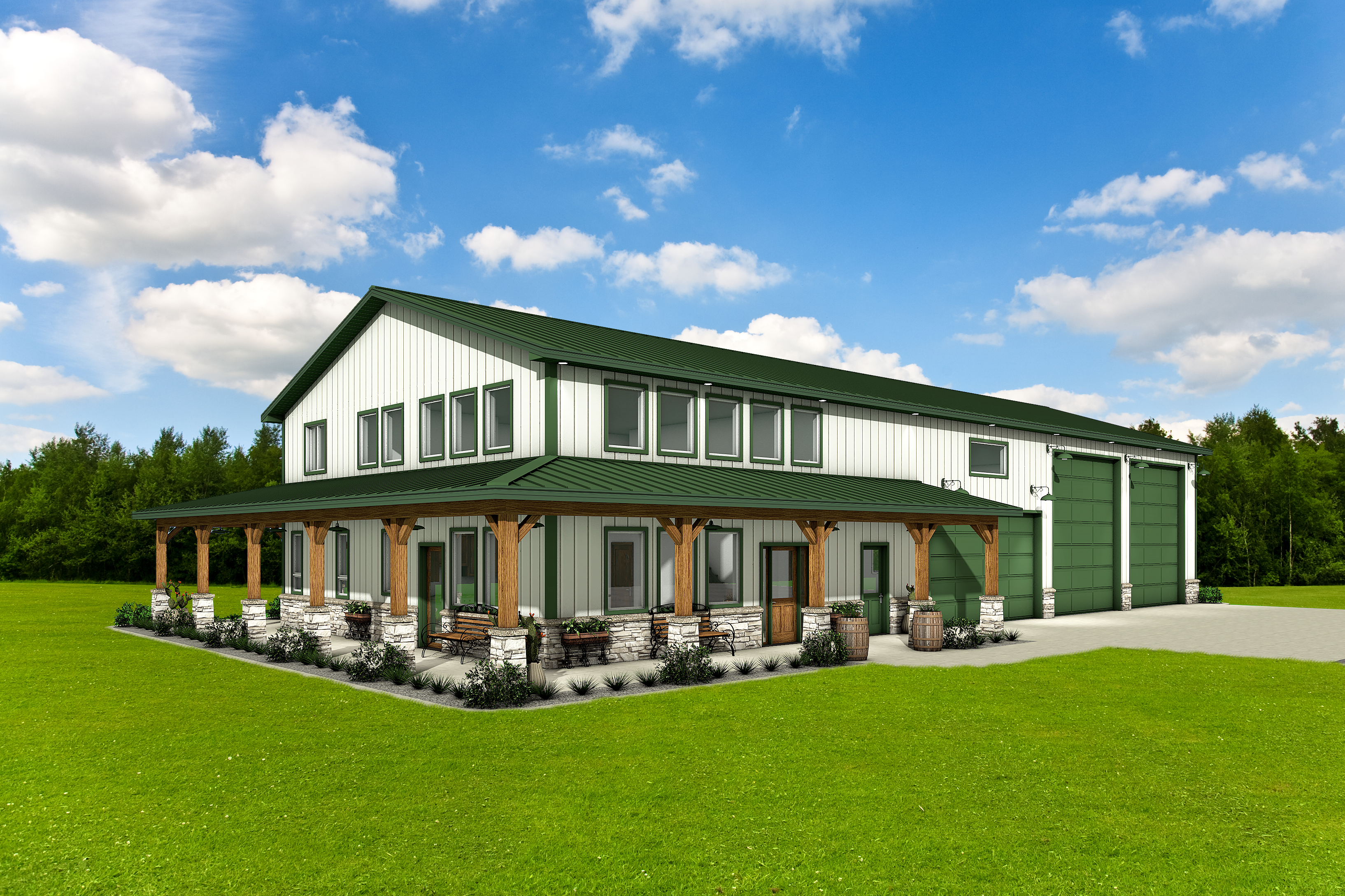 add landscaping and small bushes and shrubs around porch and building make it fall season