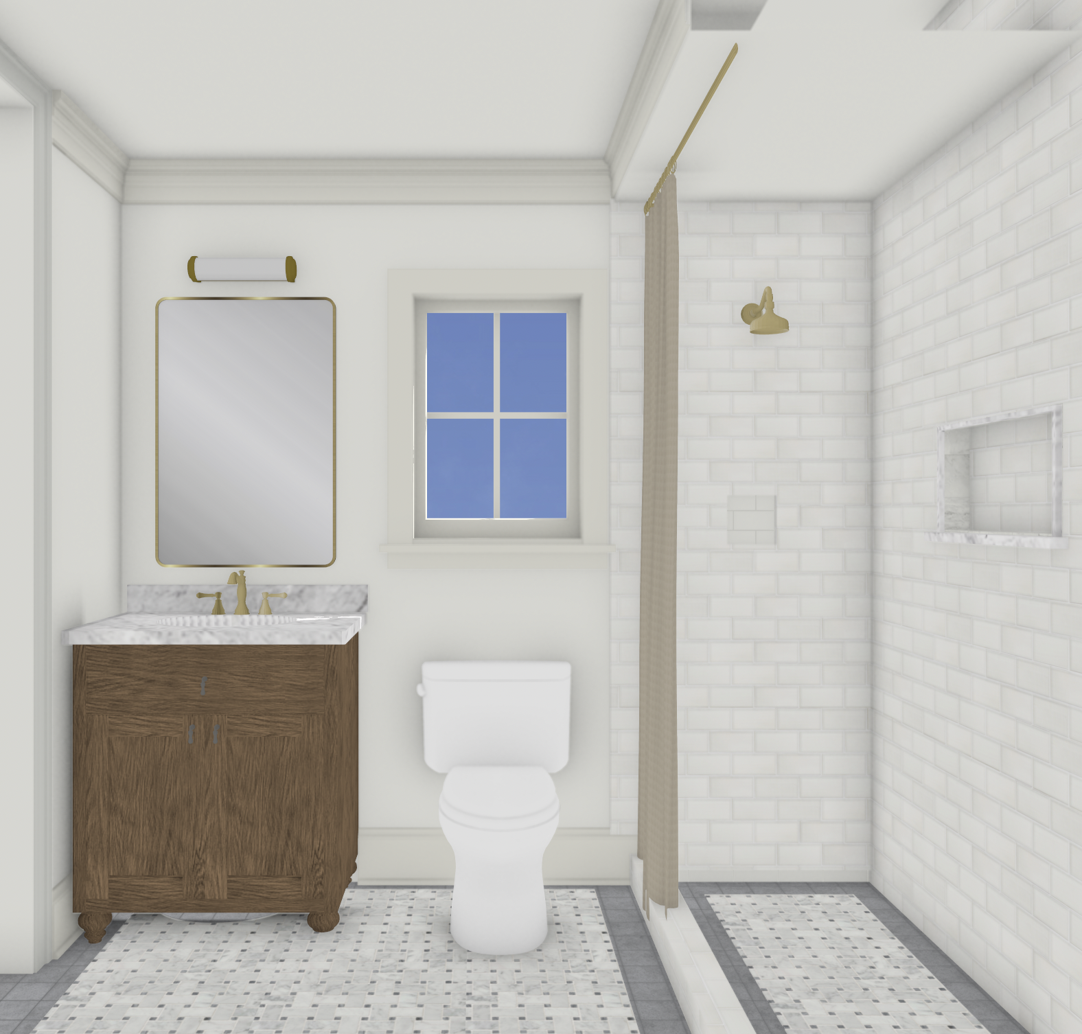 the room walls and trim should all be light bright and white the trim and the walls are the same color of paint the subway tile in the shower is also white and should have a gloss to it