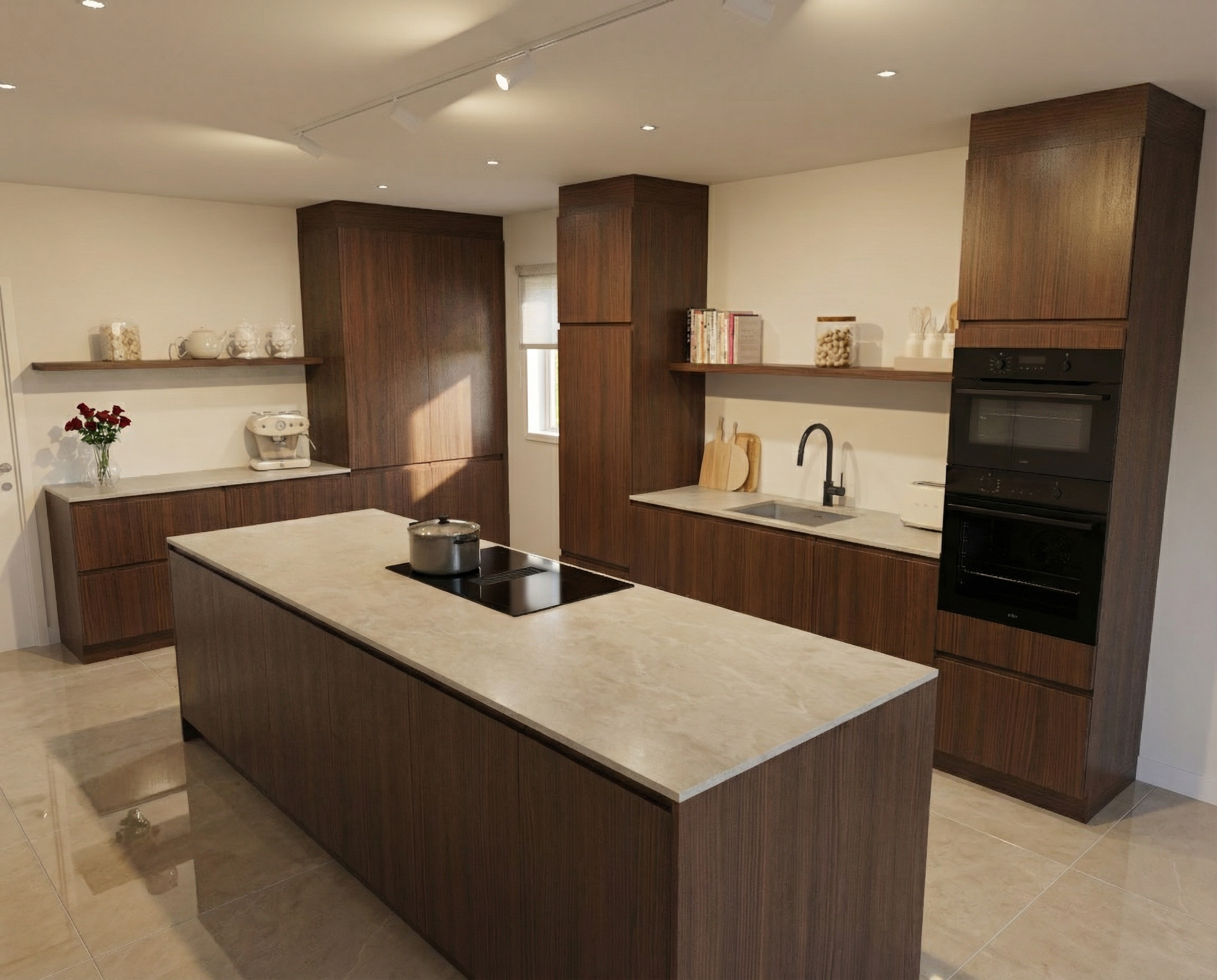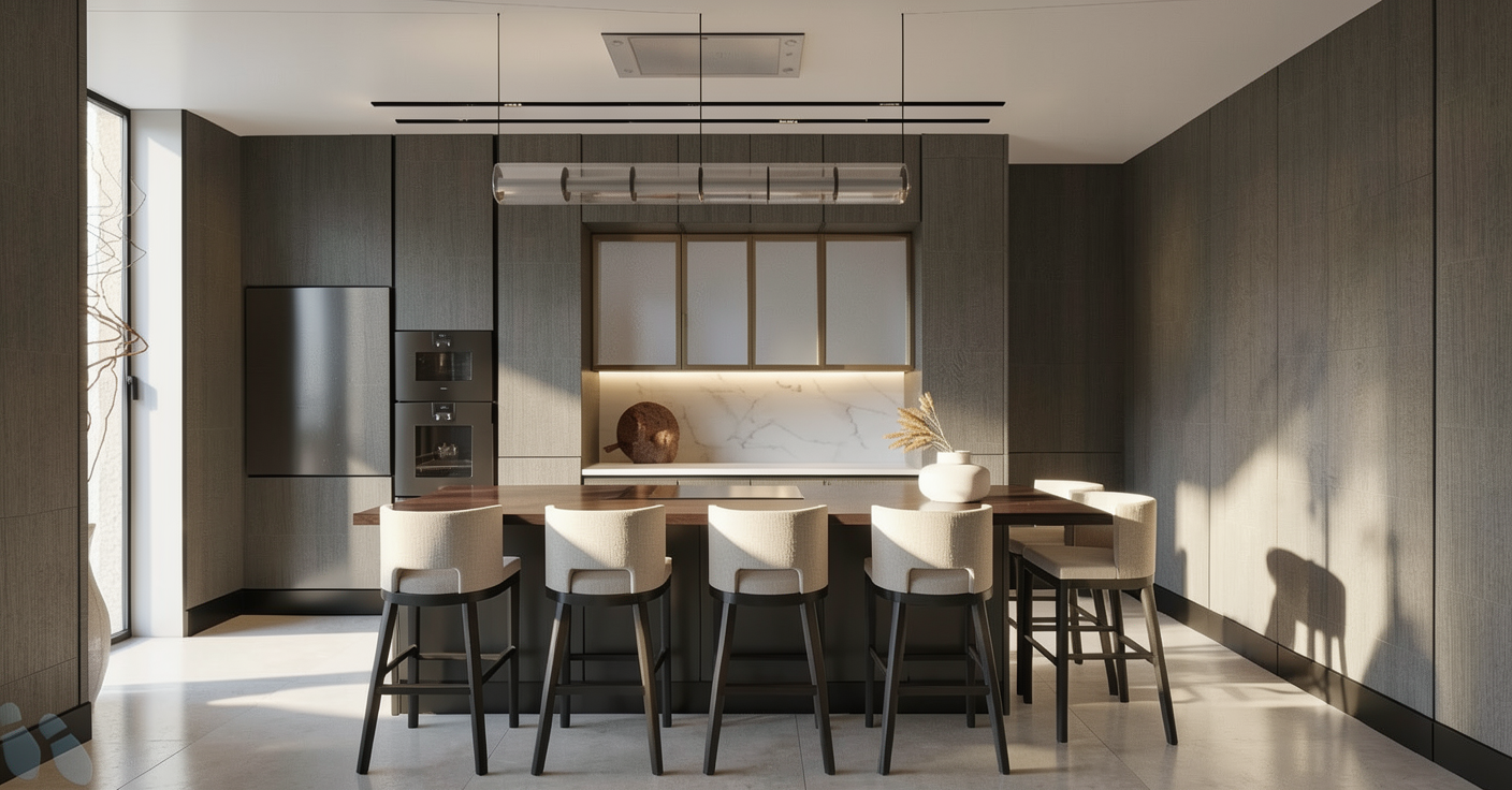 important preserve the existing geometry and the existing context exactly as provided do not modify alter reinterpret add remove scale or reshape any geometry do not change the site surroundings street layout neighboring buildings vegetation or context elements do not modify geometry scale proportions buildings road layout sidewalks or surrounding context in any way facade materials light beige warm grey concrete and plaster subtle texture high material realism emphasize facade depth through existing balconies and window recesses using light and shadow only warm interior lighting visible through windows soft and natural neutral exterior lighting early evening blue hour atmosphere soft sky realistic light falloff photorealistic architectural rendering clean and balanced contrast calm cinematic mood style contemporary european residential architecture minimalist premium understated