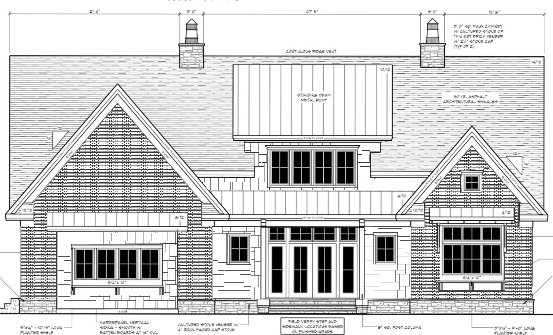 redesign to make this house more modern with off whtie brick and a taupe off white stone accent dark bronze windows and metal accent