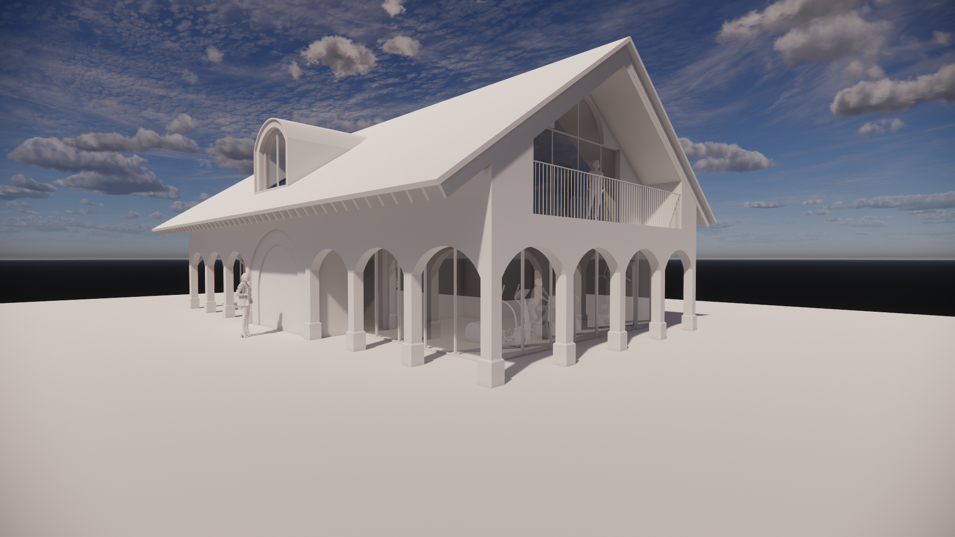 render a photorealistic 3d perspective of this house in a los angeles ca red spanish tile roof cream plaster walls luxury aluminium windows keep model geometry the same windows doors roof walls make a lush mediterranean vegetation that looks native to ca do not change the view only enhance the current materials and make the landscape nicer vegetation detailed glass reflections and a vibrant clear sky with light atmospheric depth render in hyper realistic architectural visualization quality 8k resolution