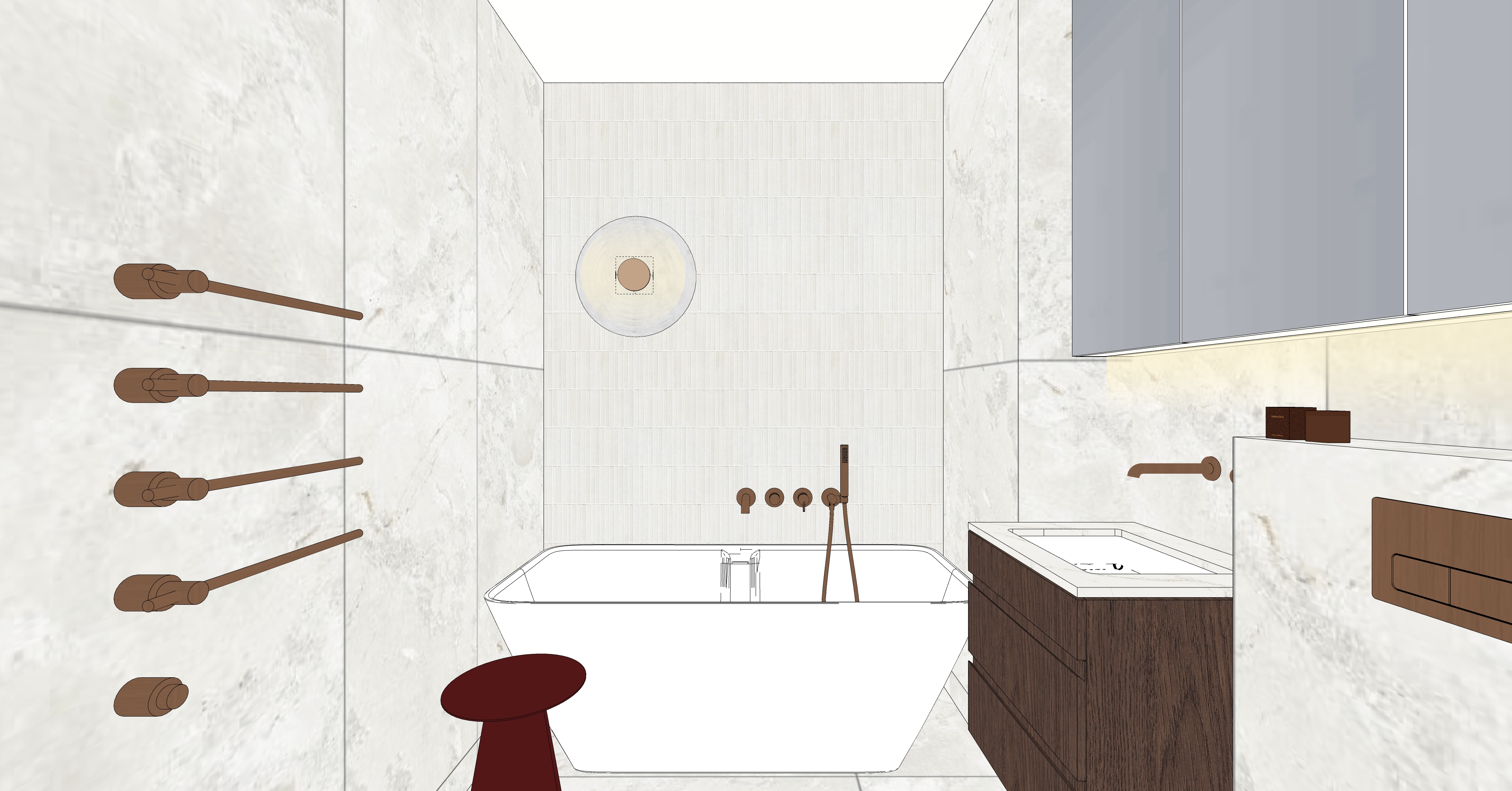 preserve all original textures and the perspective generate a photorealistic high resolution image based on my sketch there is a mirror surface on the cabinet on the right side spa mood bathroom