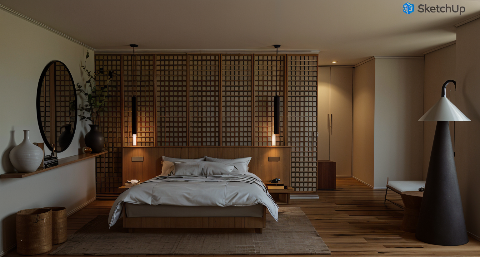 there is vertical placed wood in the panels in between te windows time of day is just before sunset
