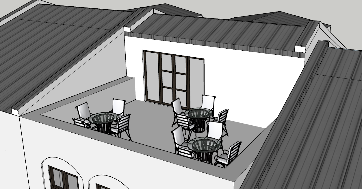 tw rz realistyczn wizualizacj przed budynkiem chc aby znajdowa si chodnik a nad nimi niebo zachowaj proporcje nie zmieniaj nic w perspektywie widoku budynk w dodaj ludzi siedz cych przy stolikach