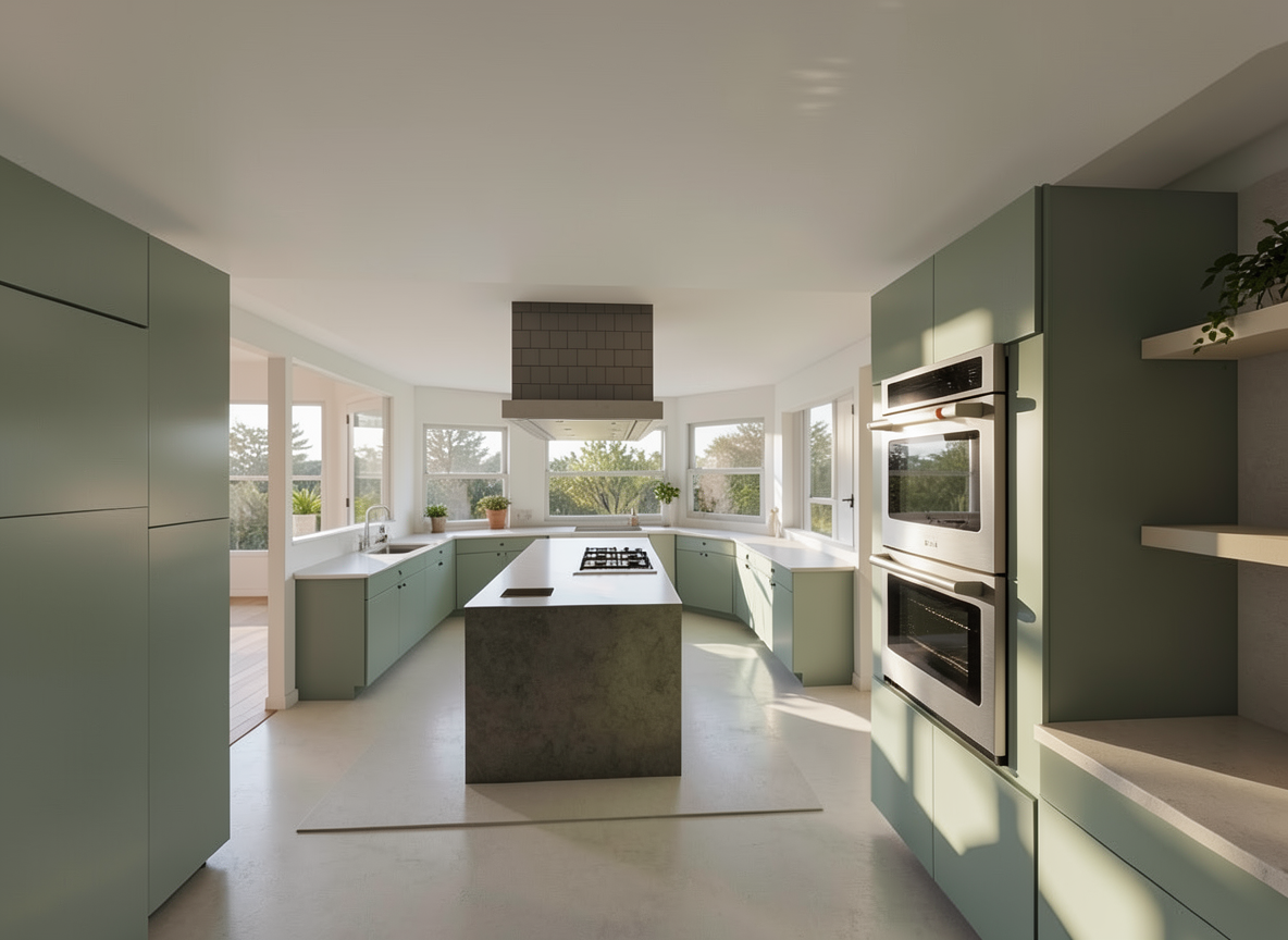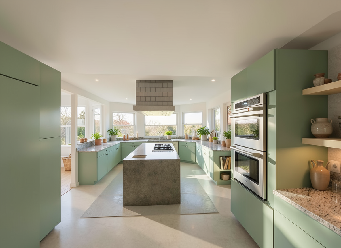 populate the kitchen make kitchen countertops a matte beige make island countertops matte green