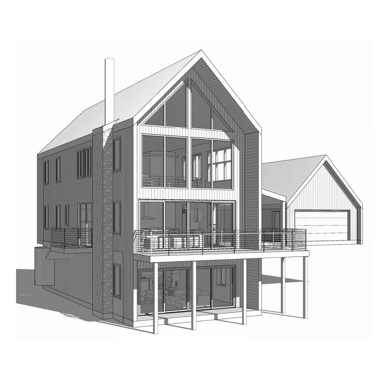 minimalism exterior shot this is in a rural hilly area upstate new york think rustic modern wood with black accents architecture