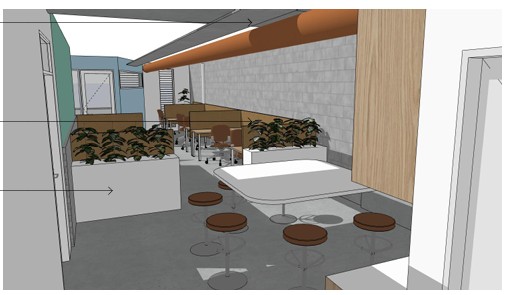make render presentation worthy do not change design delete black arrows add people and map to table