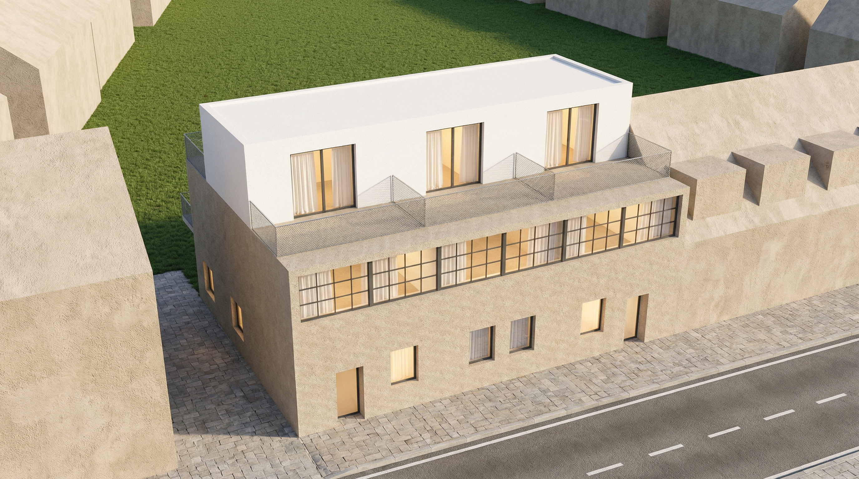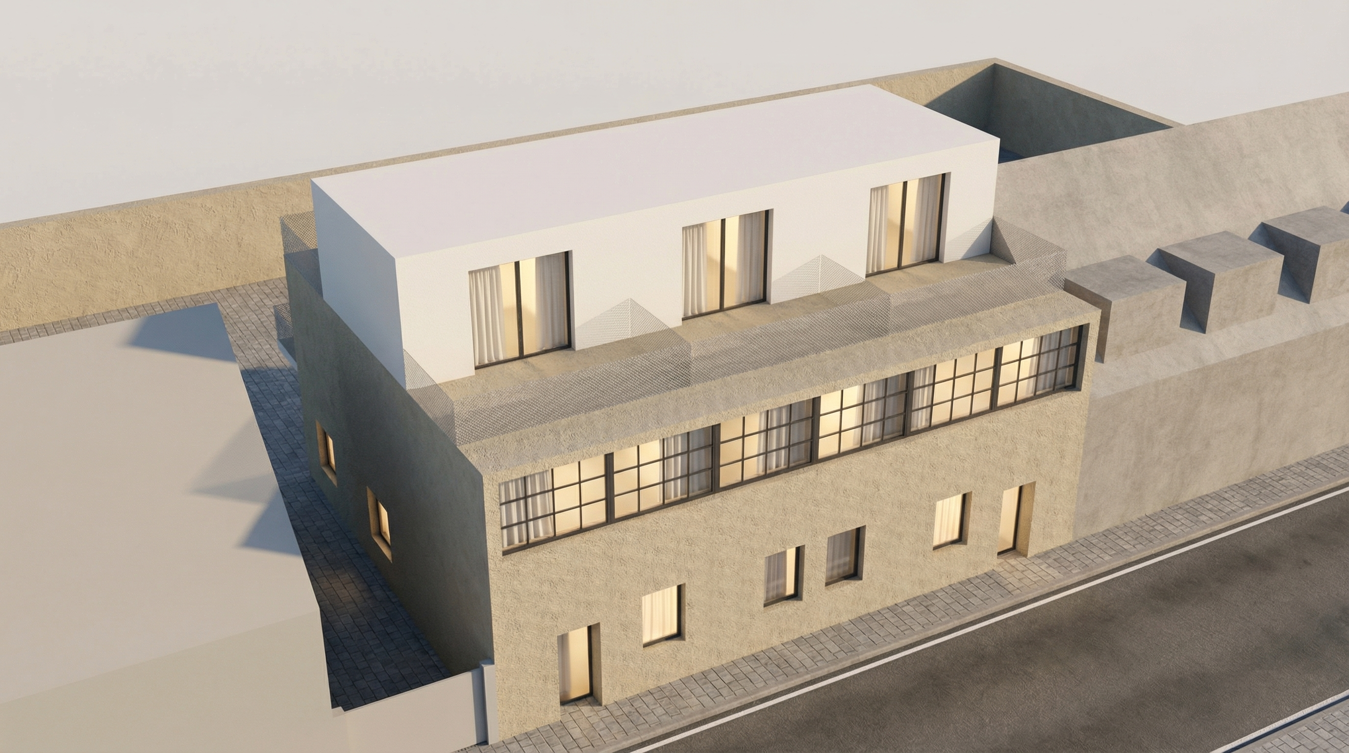render with closed shake shutters over bottom windows