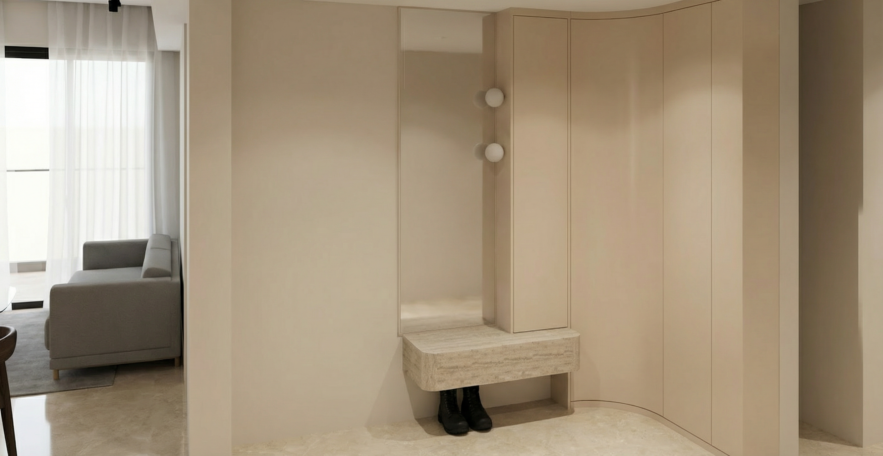 photorealistic suburban house exterior classic modern villa style clean white stucco facade warm brick accent around entrance dark gray roof tiles black metal balcony railings golden hour sunlight warm soft shadows global illumination realistic reflections on windows neat front garden landscaping trimmed grass lawn small decorative shrubs clean concrete pathway keep exact geometry keep camera angle do not change windows or volumes no design changes ultra realistic materials architectural visualization dslr photo look sharp focus high detail