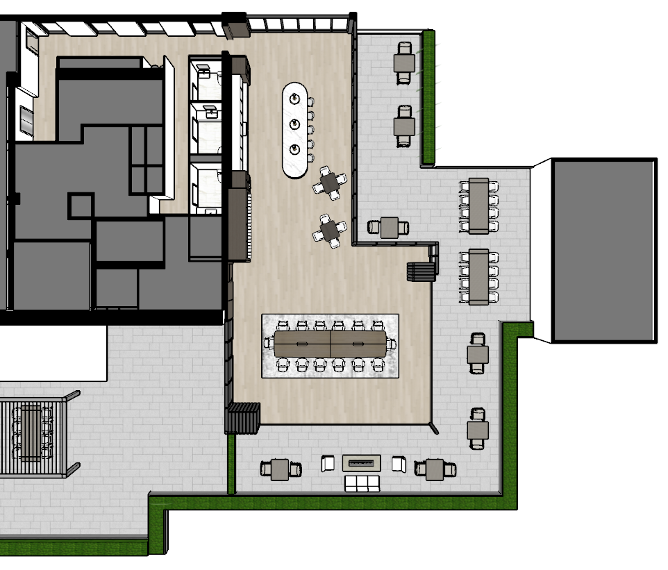 render realistic floor plan middle of the day make sun directly above the plan everything is bright and readable shade out all grey areas