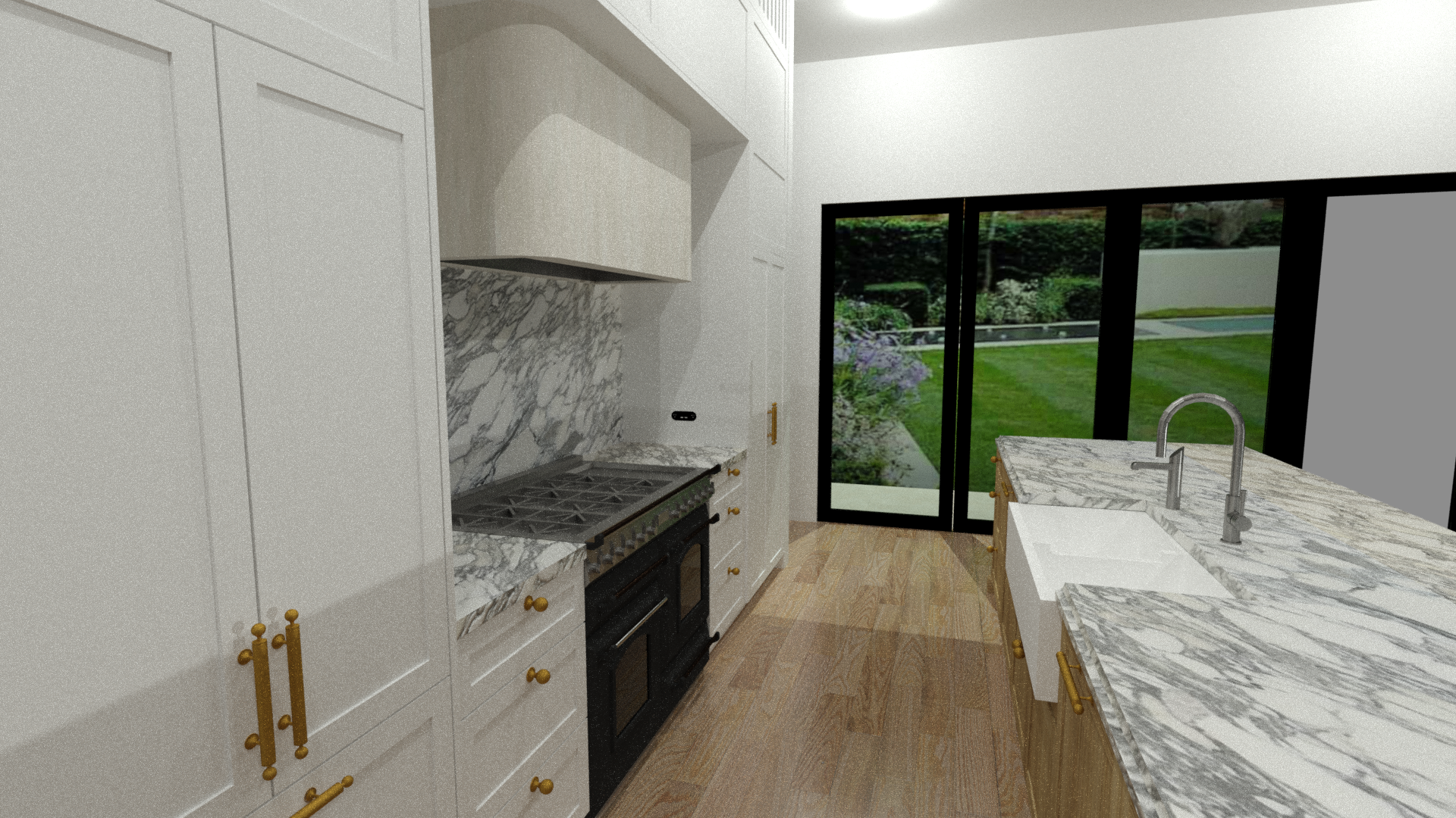 the rangehood texture will have microcement white finish
