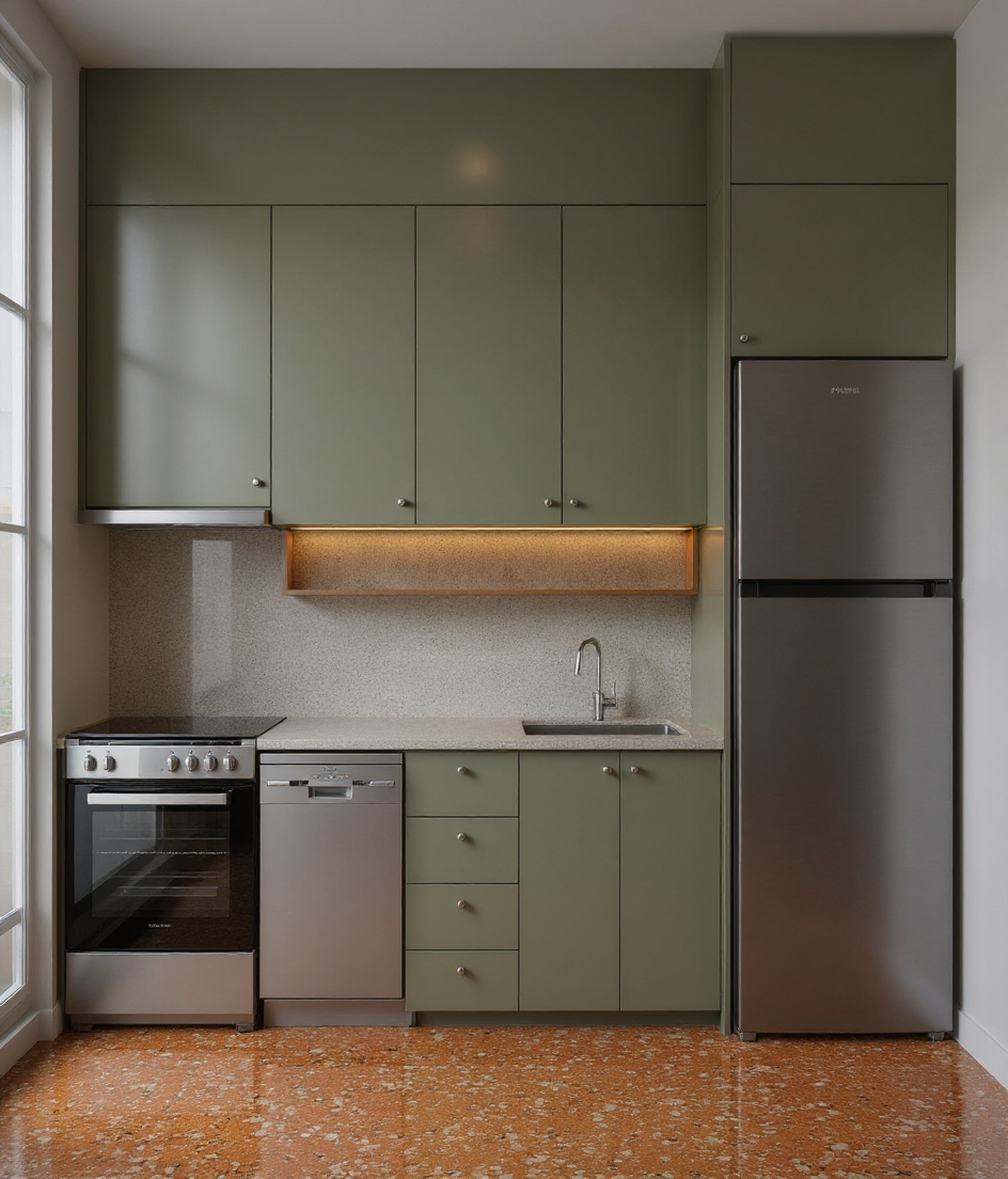 create a detailed beautifully rendered image of a modern two story house the structure features ivory walls and contrasting accents incorporate a warm wooden texture around the upper balcony the house is situated in a lush garden setting in front yard with some green grass the front entrance includes a set of gray stone steps leading up to a wooden door a sleek car is parked under a white carport the driveway and pathway are paved with reddish brown bricks add a small elegant tree with soft green foliage in the front yard planter the atmosphere is serene with soft natural lighting suggesting a calm sunny morning architecture
