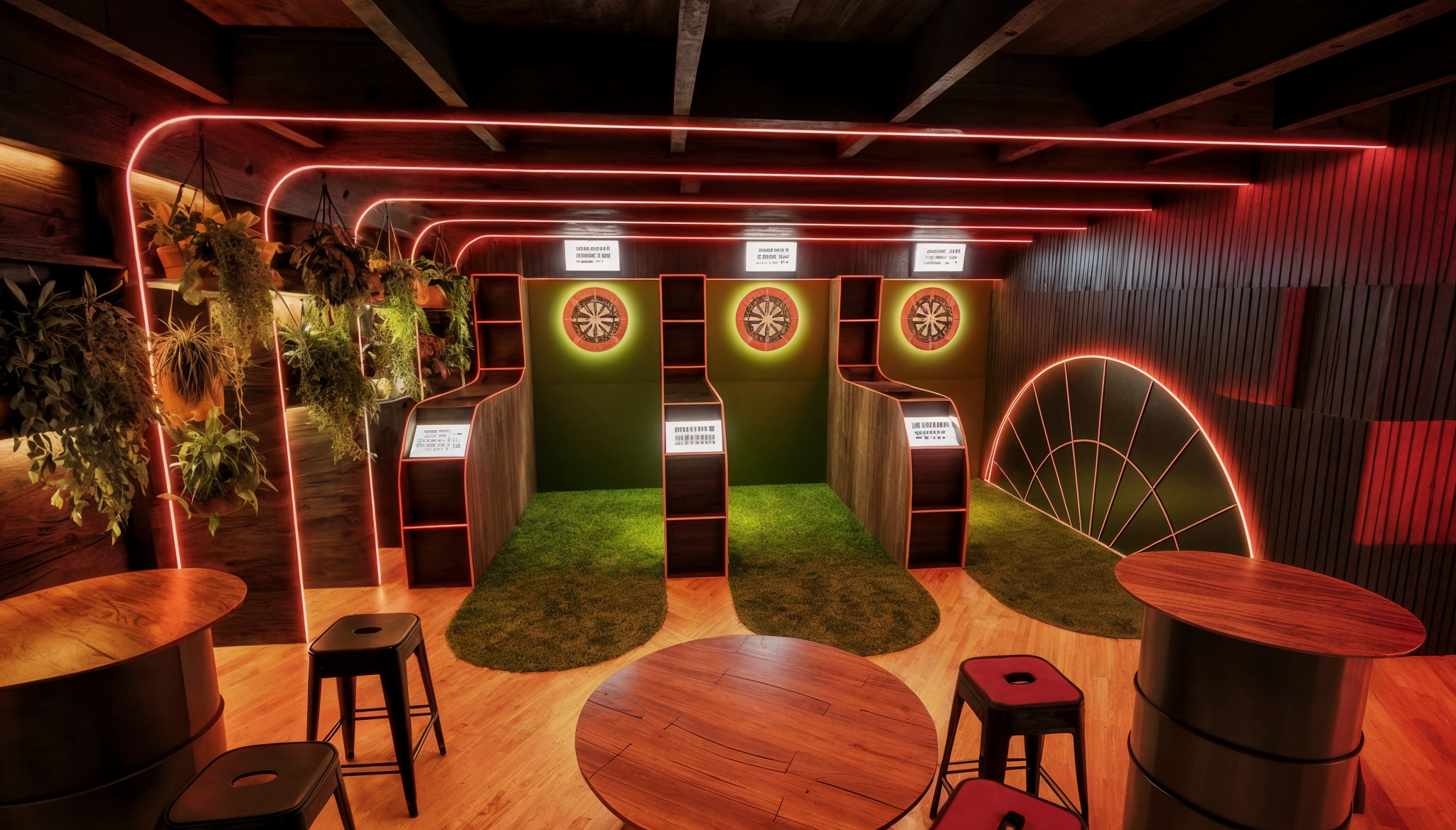 green fake grass carpet needs to be black on the left one a number one print on the middle one a number two print on the right one a number three print keep same atmosphere throughout the space