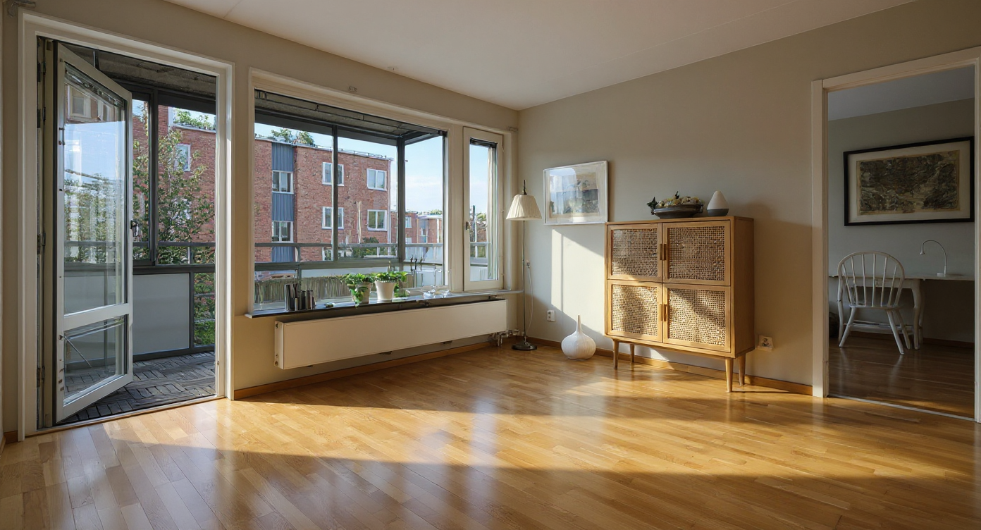 add curtains in the window but keep the original view out 4 charis at the table and remove the extra chair make the curtaisn show less of the view