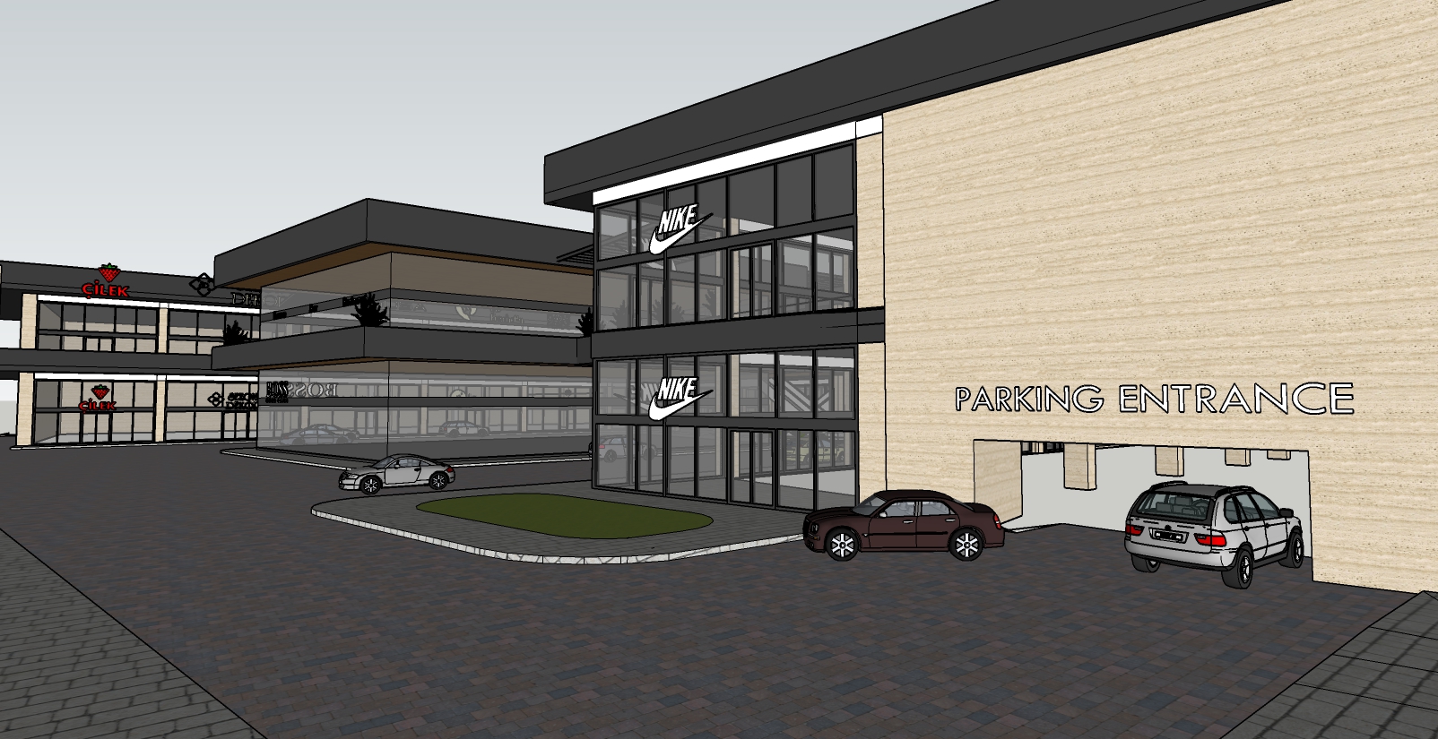 retail center home furniture and fashion brand clothes light travertine and black metal
