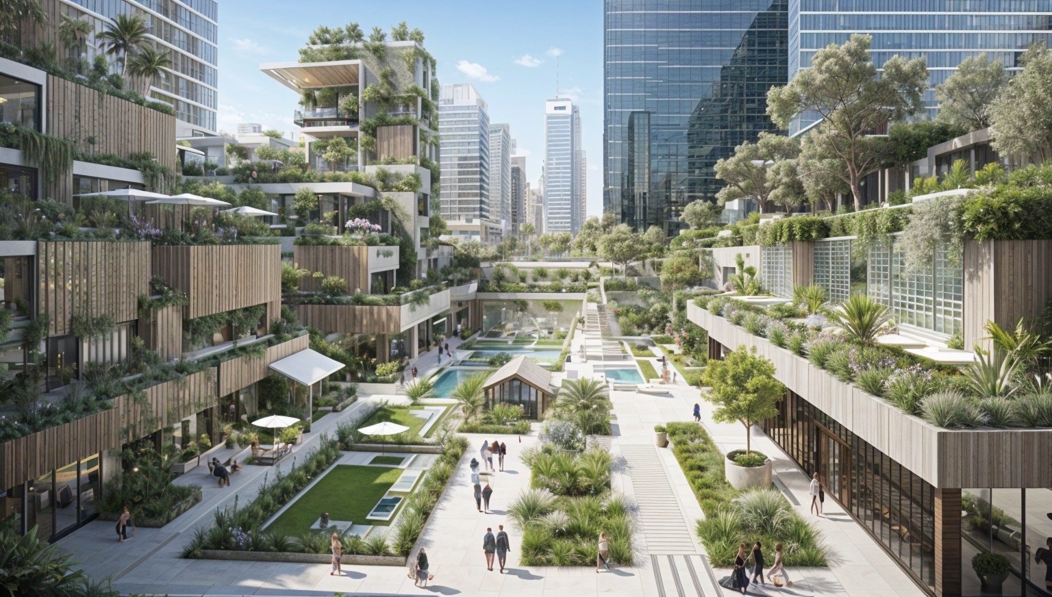 modernist aerial shot keeping the same building design and site environment but different perspectives architecture