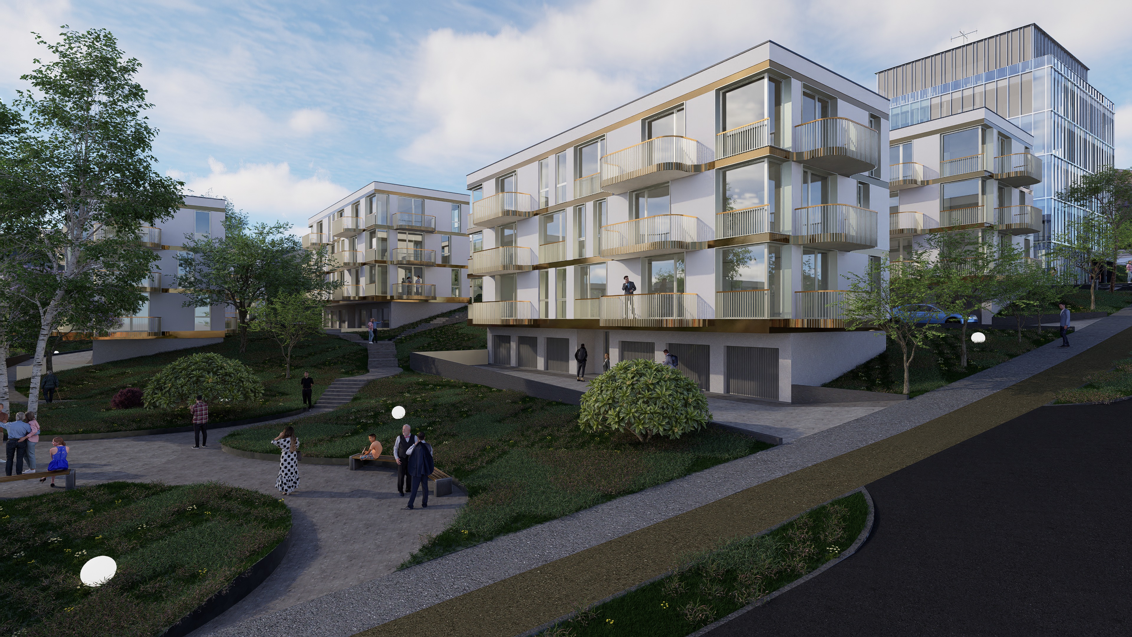 dd interior furniture lighting and curtains to the buildings add exterior golder hour lighting do not change the volumes and exterior shapes