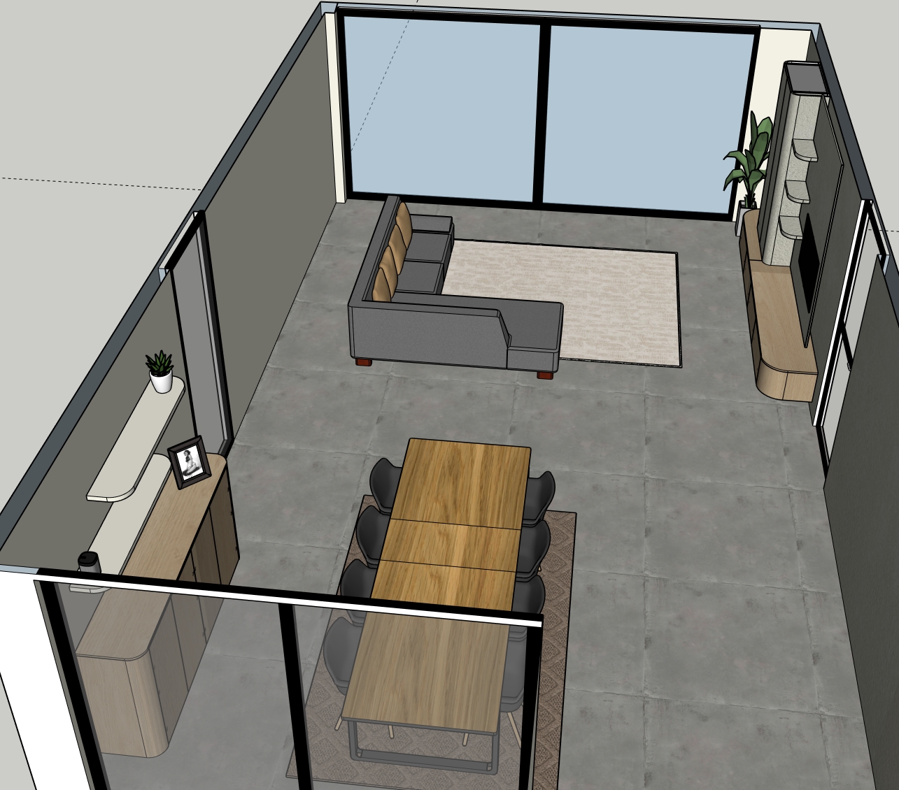 only the lower cabinets are in light oak the rest of the cabinets and the shelf technique are like the walls the floor is a matte gray floor the walls have a plaster technique aquasensa light the ceiling is white a round everything white