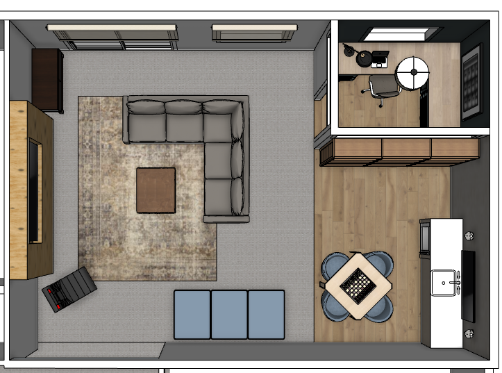 create a photorealistic image of the 3d model do not change size scale colors materials or layout