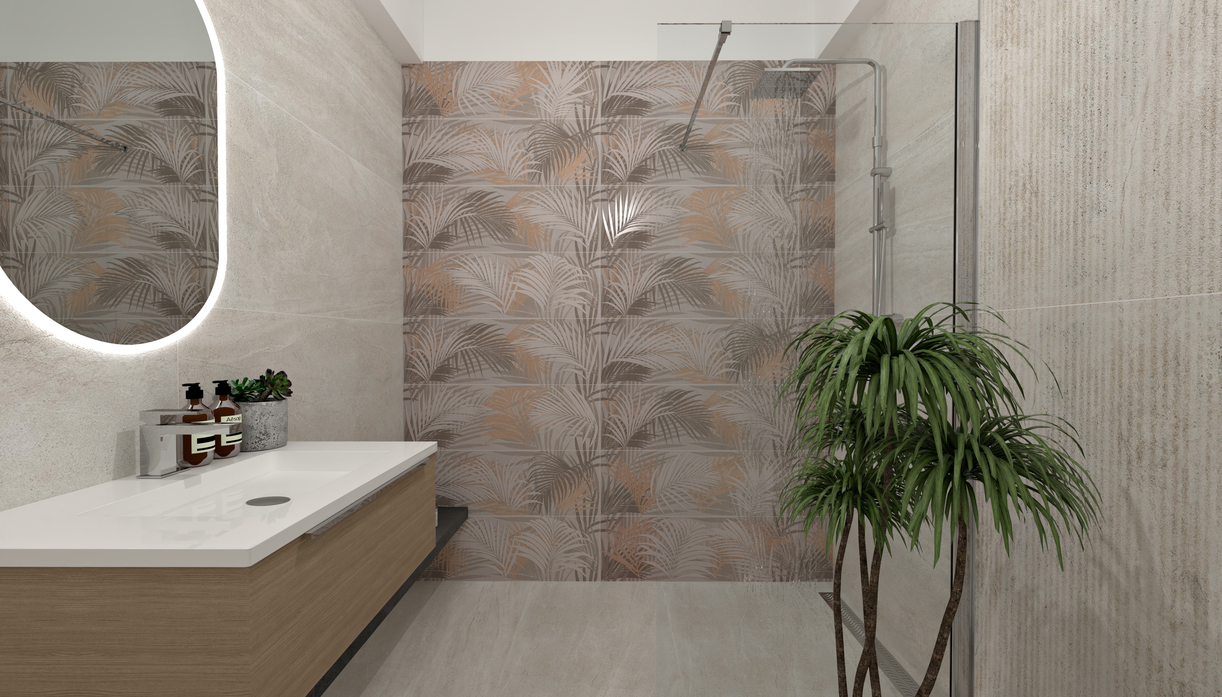 one spot light in the shower and one spot light on the sink but not too intense just a little cold color