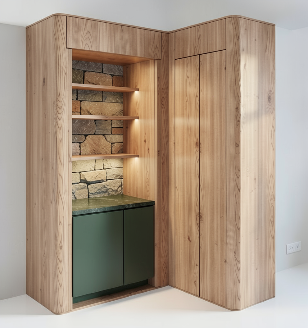 add fire in the fireplace and add books to a bookshelfs but leave the bookshelfs as it is also please add fire wood into the nook on right side next to the fireplace