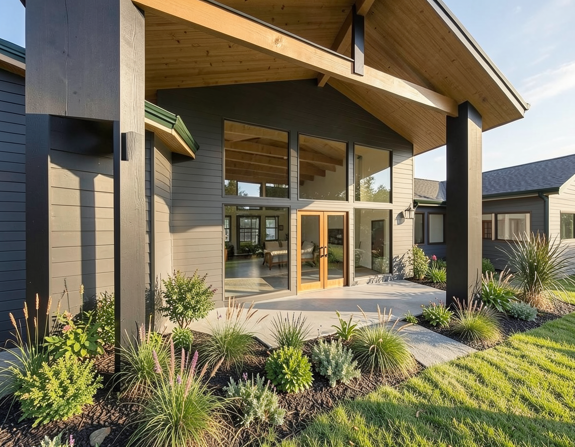 bright day time natural lighting soft shadows space is evenly lit downlights interior photography realistic slightly reflective led lighting in cabinets wood mantle around fireplace