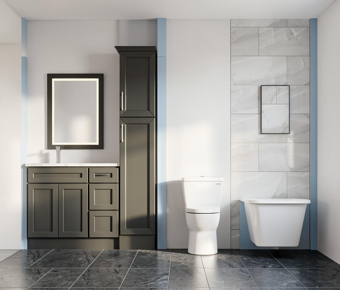 change the floor to a textured dark gray 12x24 tile