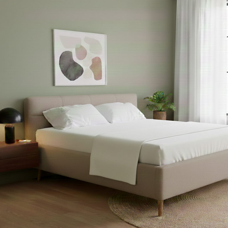 please change the white sheet on the bed to a color code hexa 5f4977everything else should stay the same pillows are white