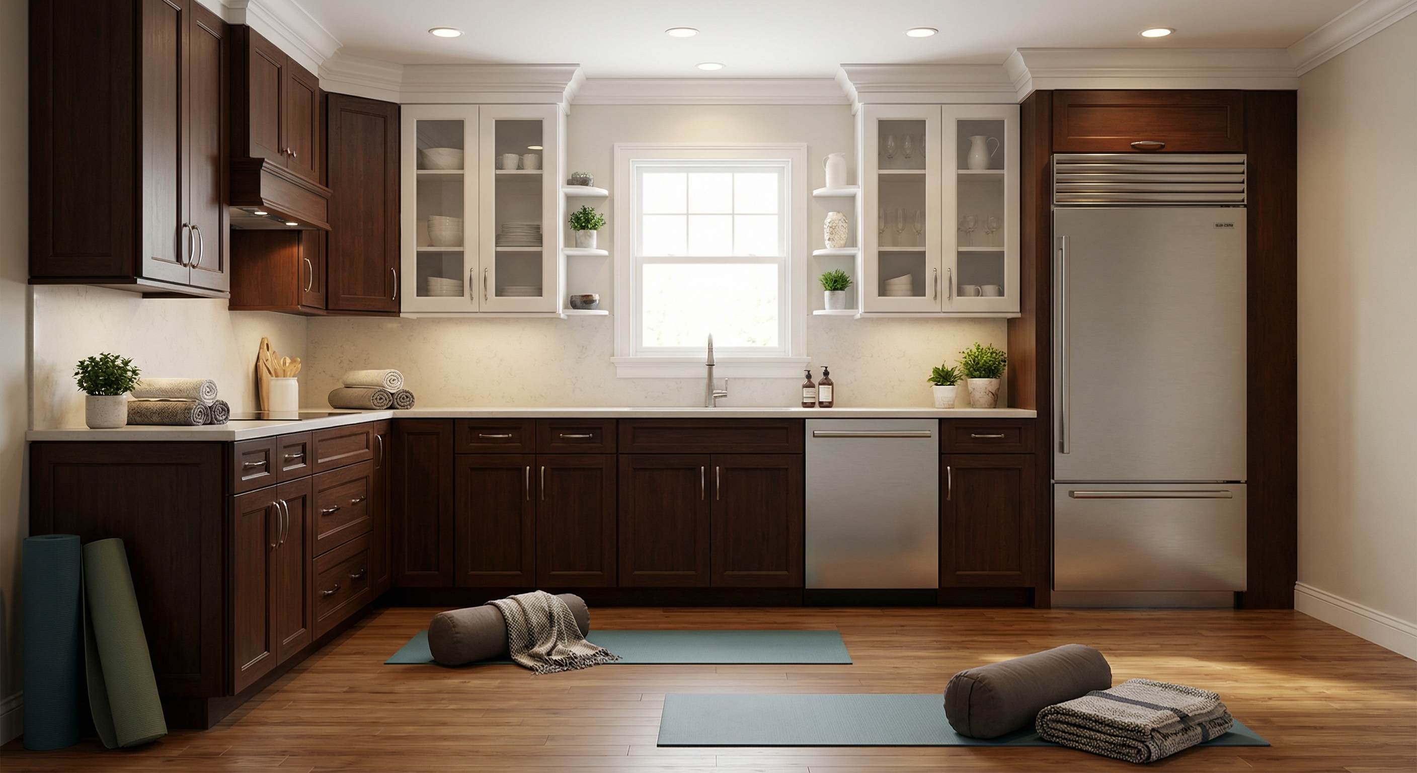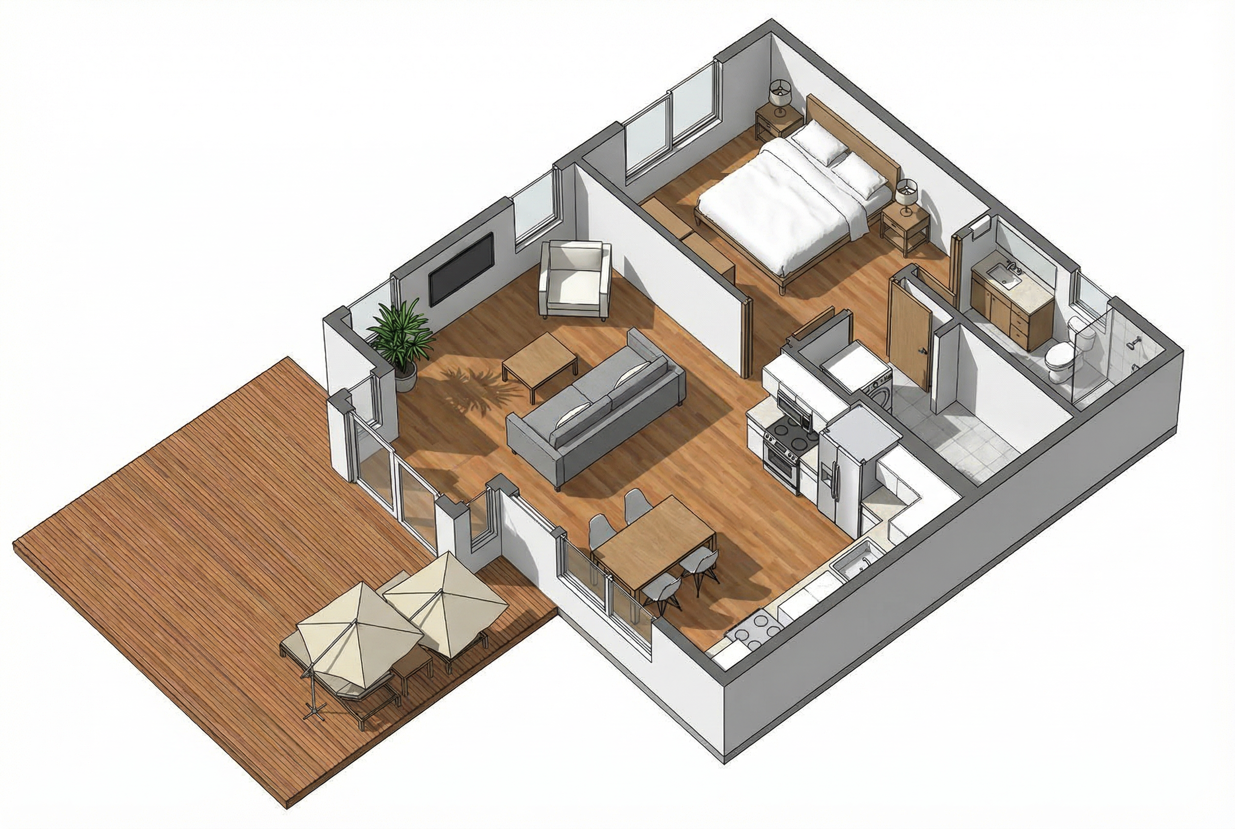 this is the backyard add a contemporary looking square in ground pool and an outdoor kitchen put contemporary reclining chairs by the pool put bathing deck with reclining chairs in the shallow end of the pool put an elevated hot tub at the other end of the pool see 2nd rendering make the yard a lot bigger this house will sit on several acres of cleared and manicured land white or very lightly off white exterior charcoal gray metal roof black framed windows these are in most new builds let s make the plants tress a little more tropical with palm trees palmetto pindo mexican fan palm european fan palm windmill palm crepe myrtles it s nice to use live oaks water oaks southern pine trees loblolly pine and ground foliage let s try not to have the trees block the view of the house