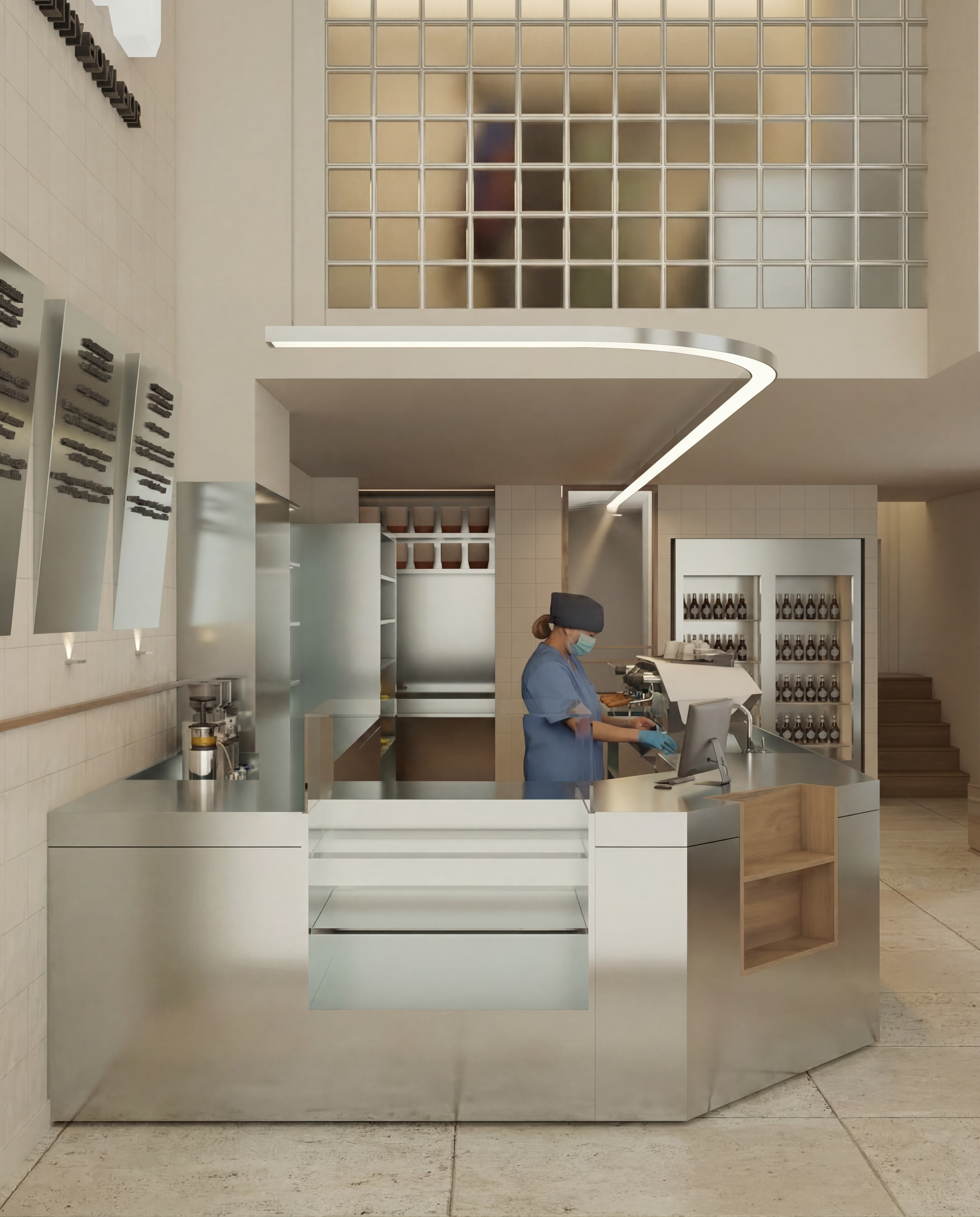 modern steam room maintain parameters of the room add people in bathing suits sitting on the bench add modern tile design on the walls and ceilings with a little shimmer and flair