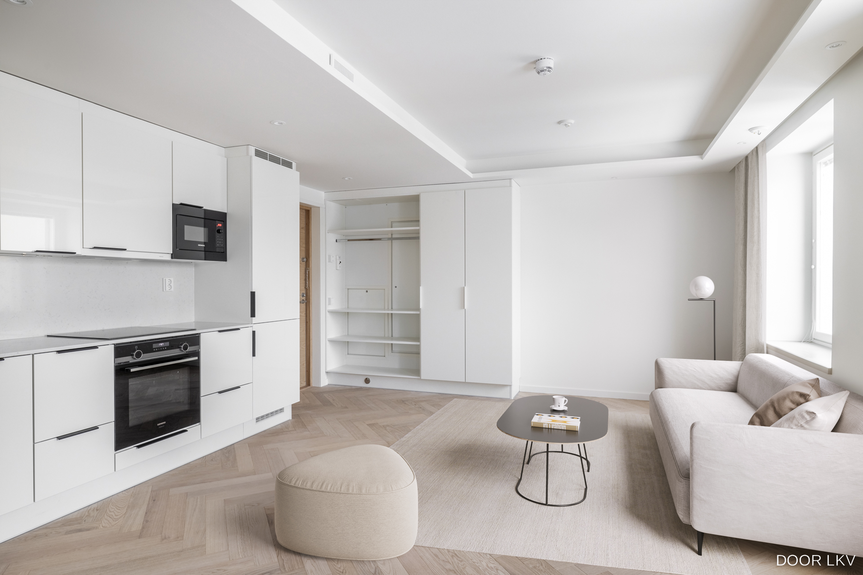 add tv and green and pot close to window few jacket close to wood door authentic keep original photo