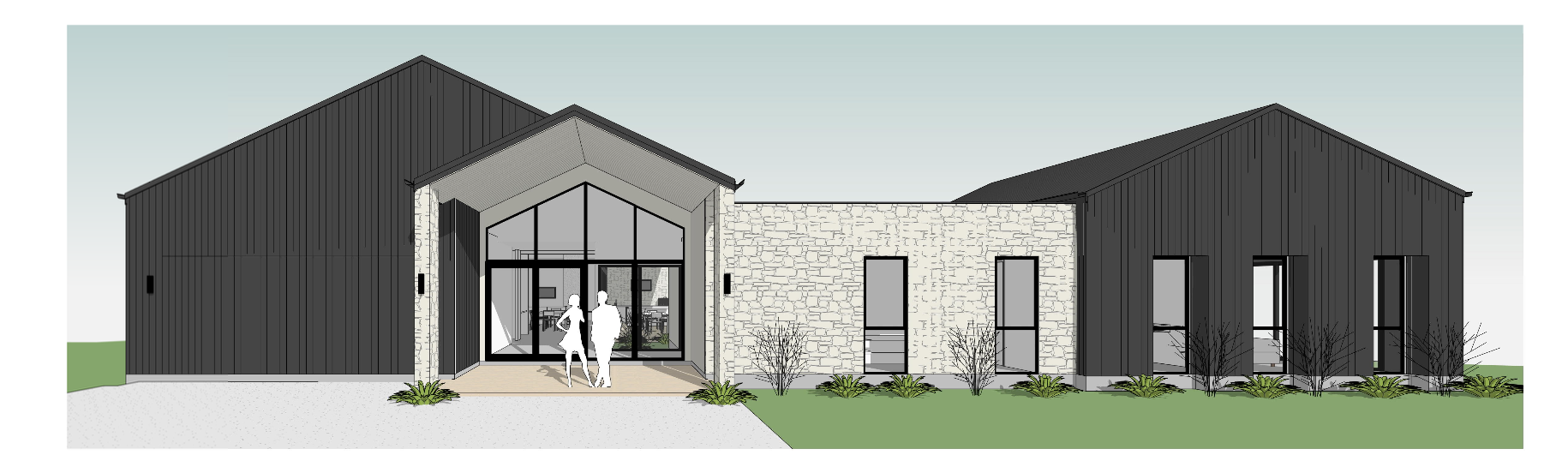 ceiling in entry blonde ash timber make the stone a soft light sandstone colour the black cladding timber black